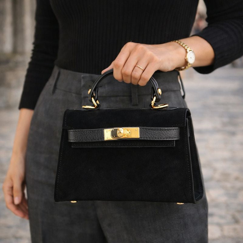 Bolso en Piel Pregato mini Latenza Ante Negro