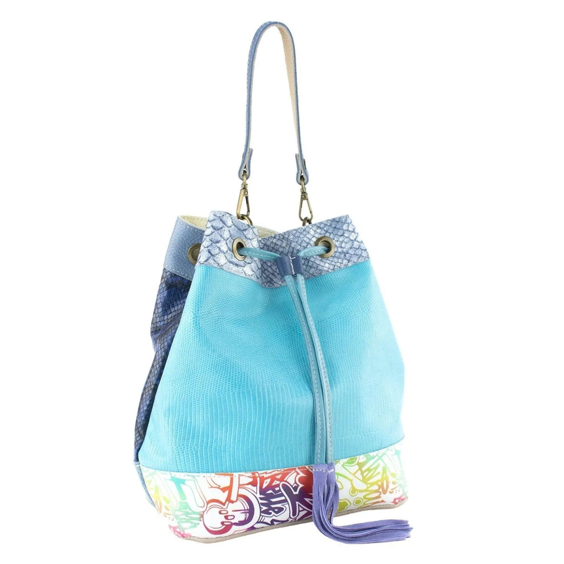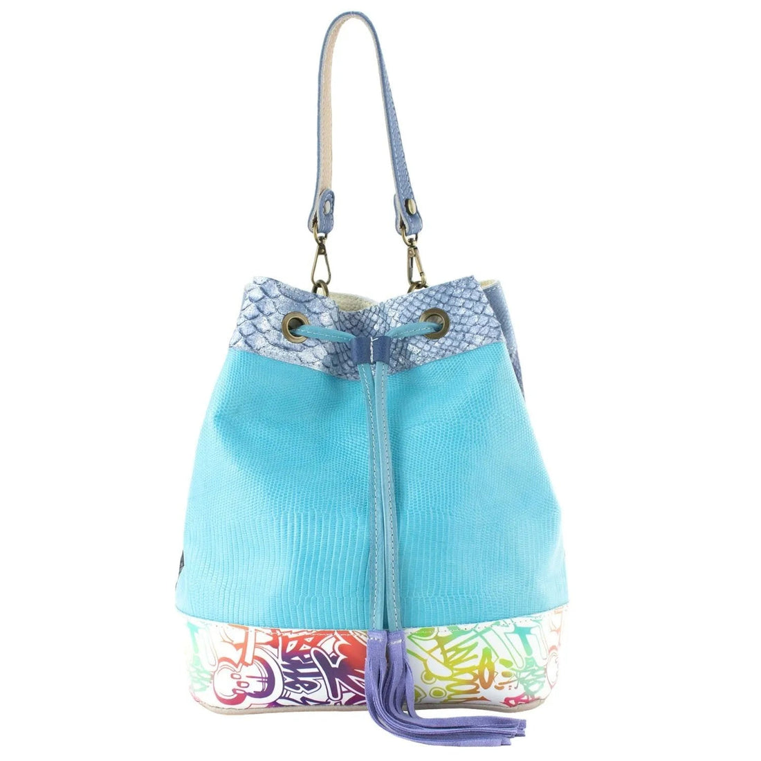 Bolso de mano Piel Pregato Gekko Turquesa