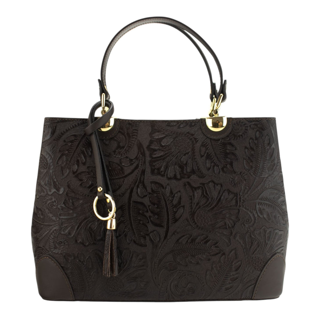 Bolso en piel Pregato Eleganza Grabado Marrón oscuro