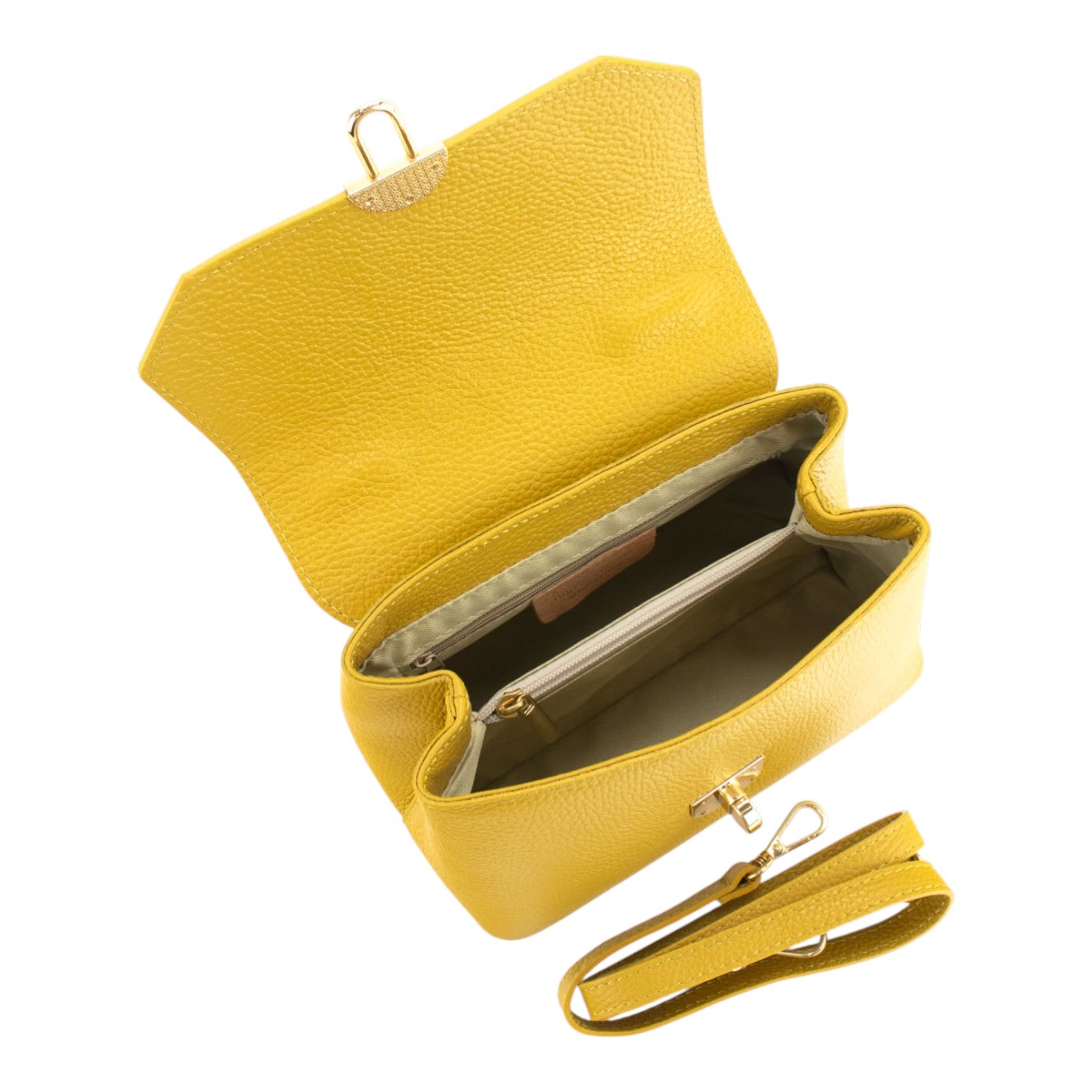 Un bolso muy completo y cómodo para lucir a diario, realizado en Piel 100% genuina vacuno italiana, este bolso está hecho en Italia con una excelente manufactura y calidad, un bolso precioso con asa de mano y cierre de solapa con un precioso broche metalizado. Con doble compartimento interior separado. Además incluye una cinta de bandolera ajustable a juego. Escoge el tuyo disponible en variedad de tonos ¡Te encantará!