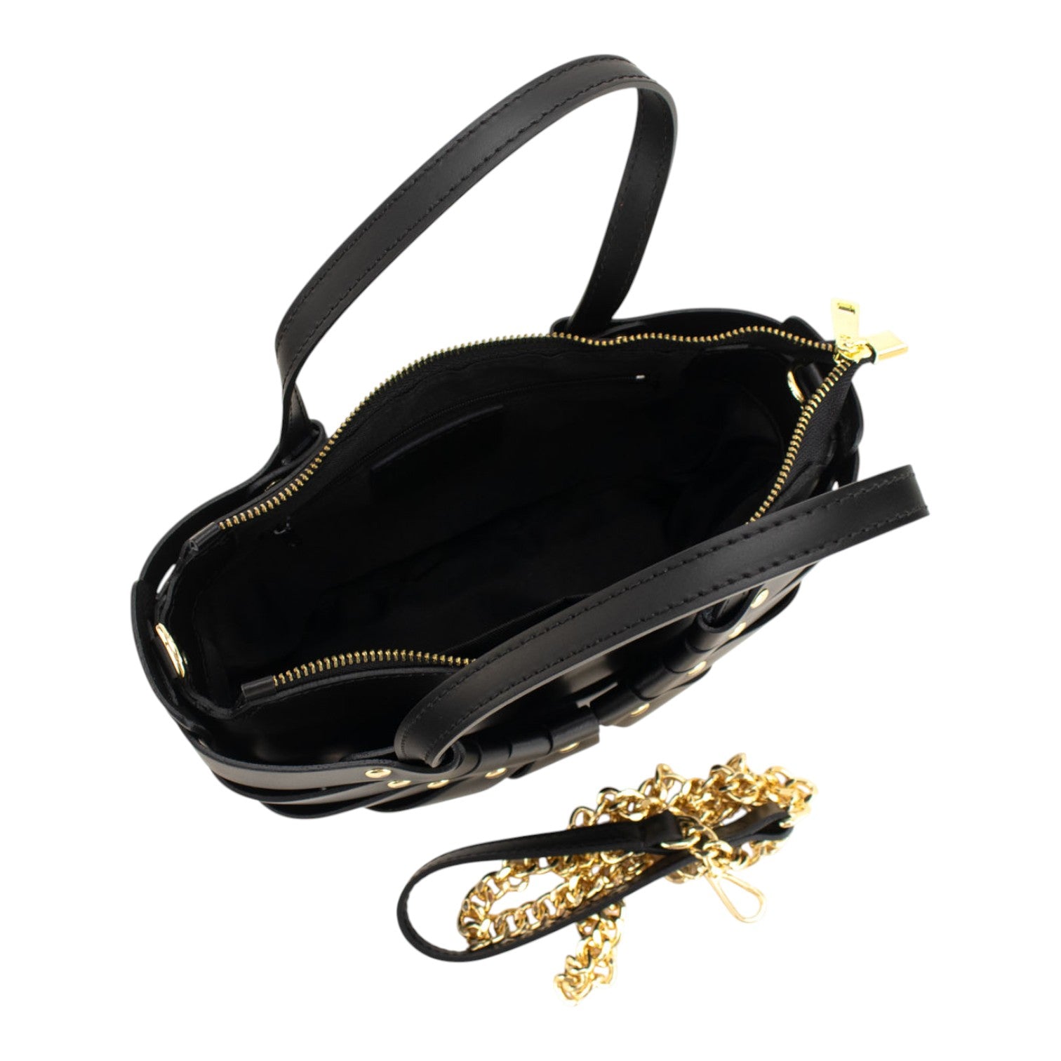 Confeccionado en piel vacuno 100%, destaca por su excelente calidad, tacto suave y gran resistencia. Dispone de asa de mano para un uso más clásico y una cinta de bandolera de cadena no ajustable que le da un toque chic y permite llevarlo cómodamente al hombro o cruzado. Su cierre superior de cremallera garantiza seguridad y practicidad.