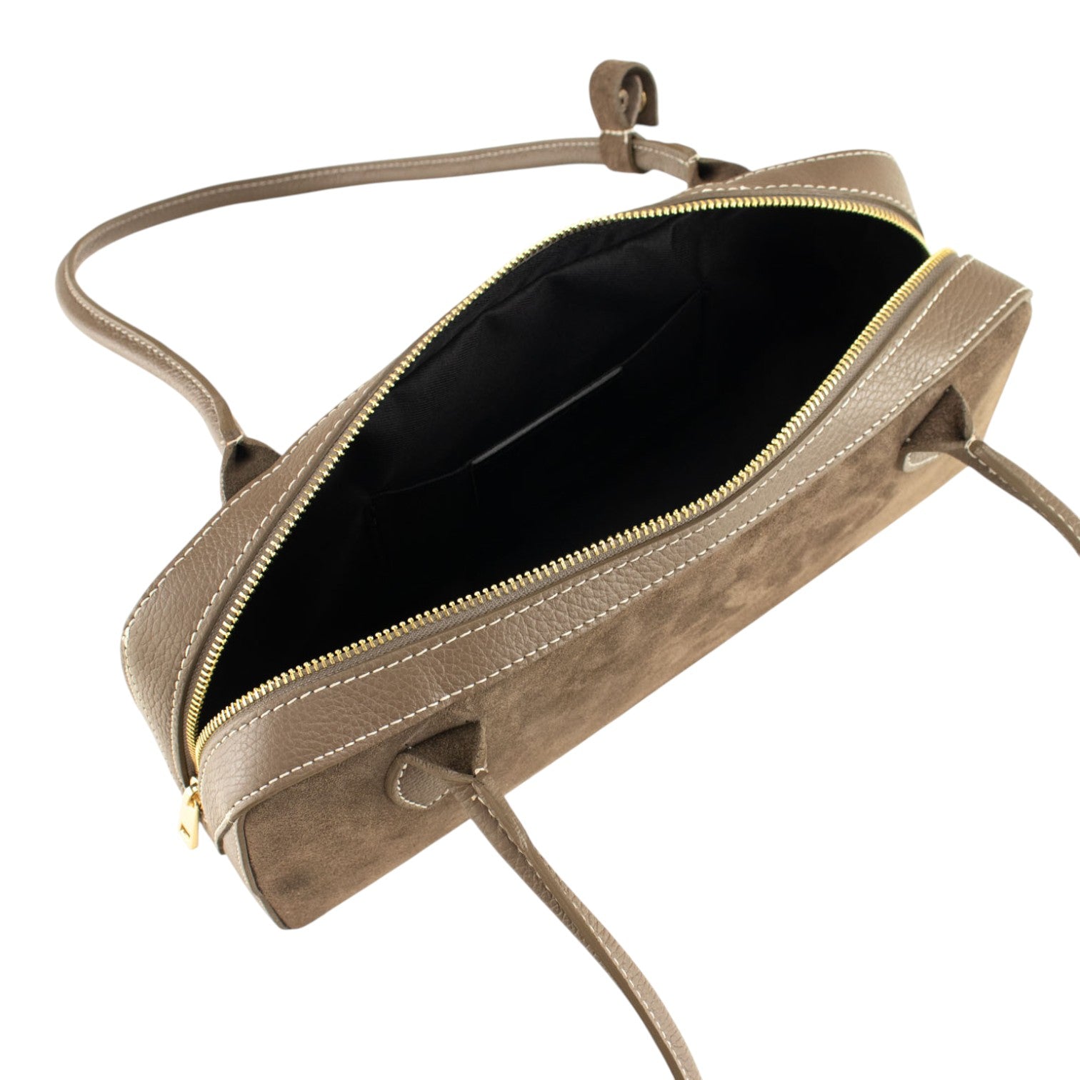 El Bolso de Piel Pregato Cleo Taupe es la definición de elegancia atemporal. Un diseño refinado y minimalista, confeccionado en piel 100% vacuno con un exquisito acabado en ante, ideal para quienes buscan un bolso sofisticado, ligero y cómodo para el día a día.