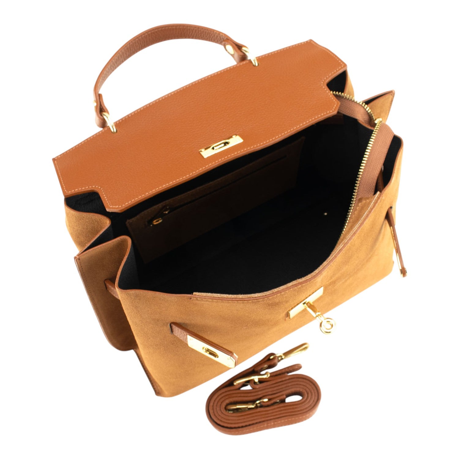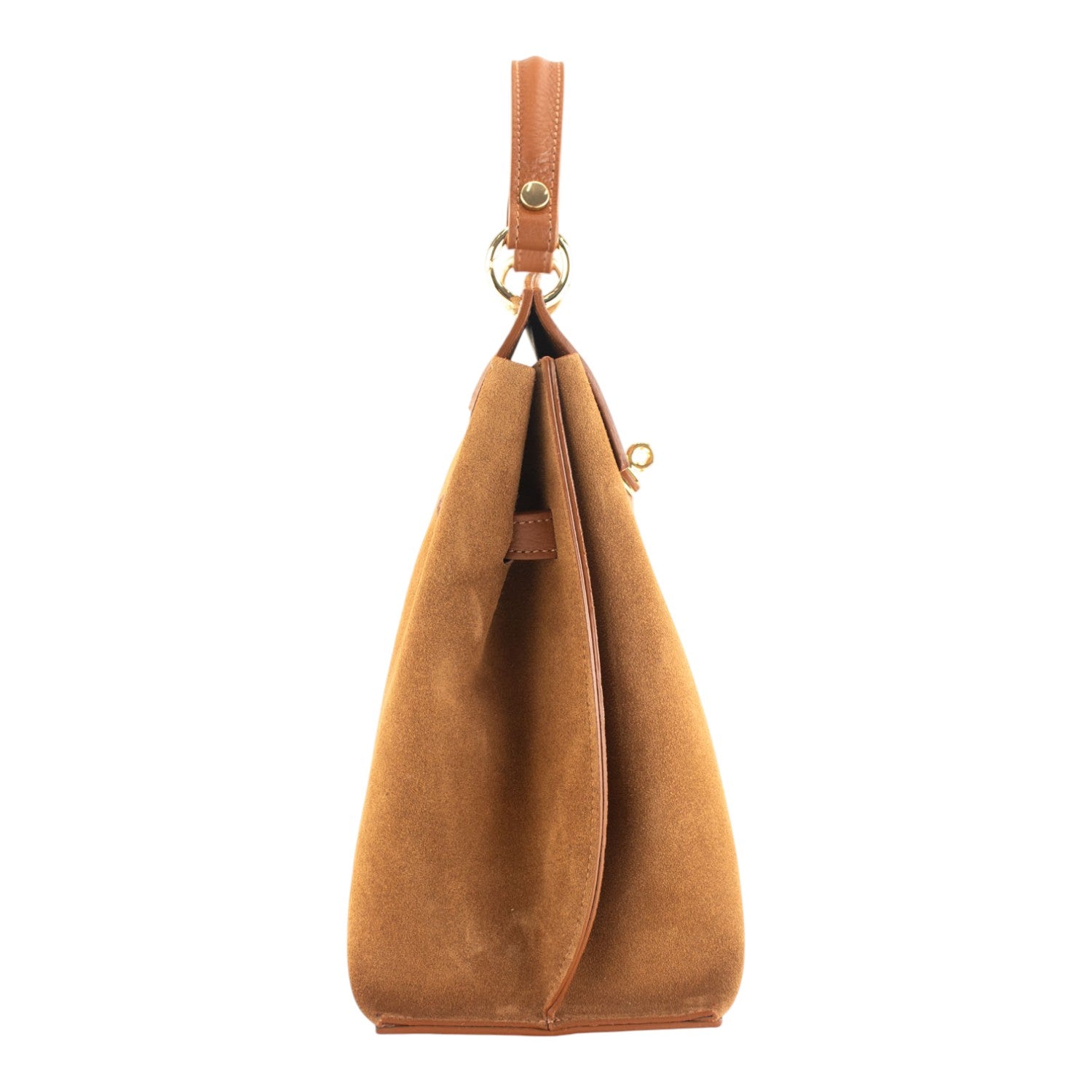 Elegante y sofisticado, el Bolso en Piel Pregato Nobile Ante es una pieza atemporal pensada para acompañarte tanto en tu día a día como en ocasiones más especiales. Su cuidada combinación de piel vacuno lisa con acabado ante aporta un toque distinguido y actual, mientras que su estructura definida garantiza comodidad y organización.