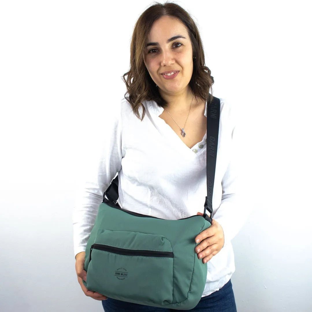 Preciosa Bandolera Garni media Garni Genova, con cinta regulable a la altura deseada, compartimento principal con cierre de cremallera, compartimento delantero con cremallera, muy ligera ideal para todos los días