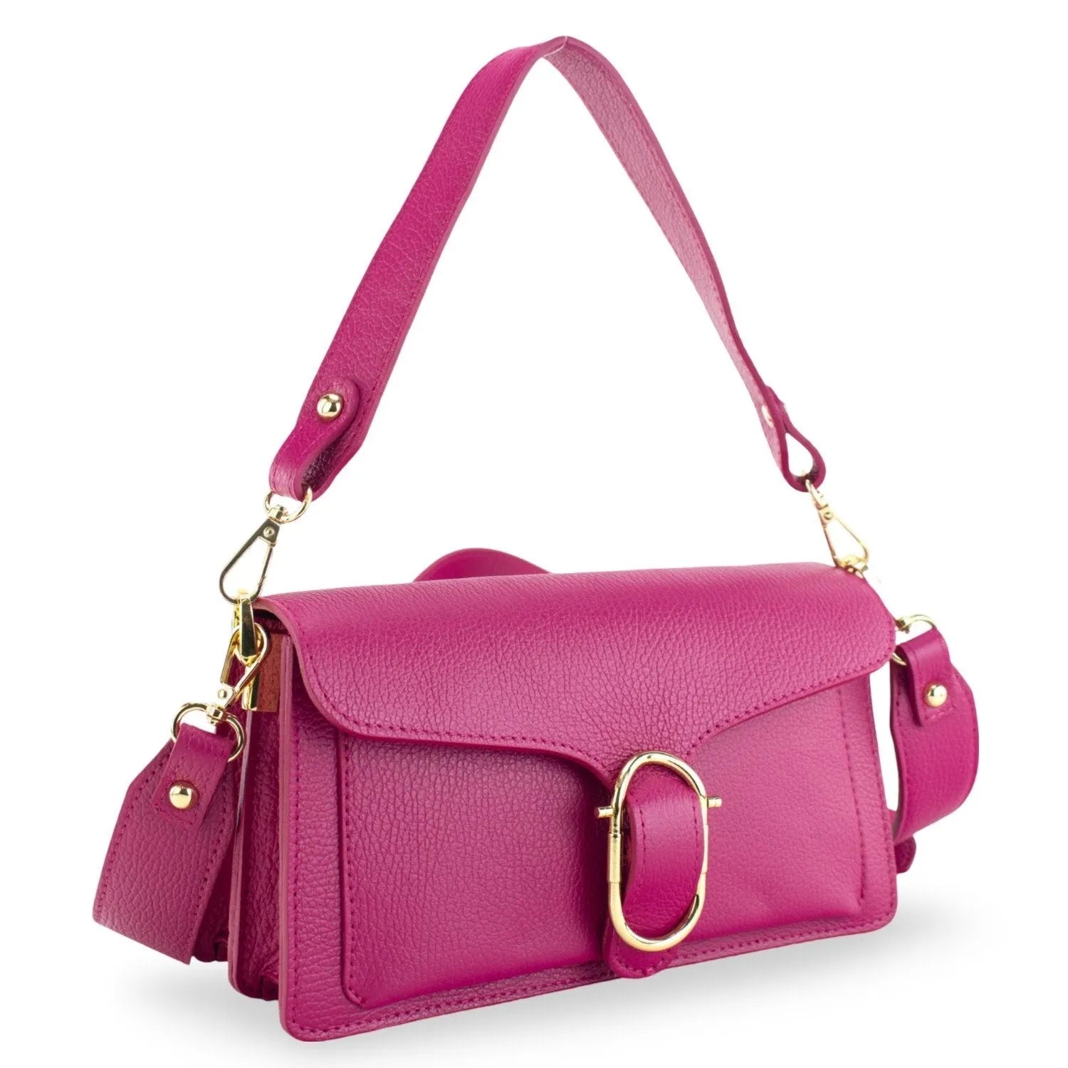 Bandolera Piel Pregato Fíbula Fucsia