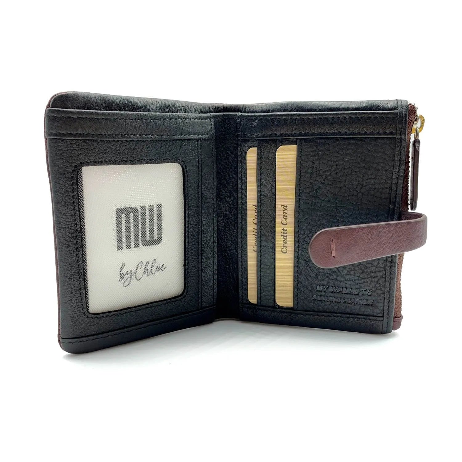 Billetero pequeño de mujer ByChloe con cierre de broche de acabado listo suave estilo touch con logo grabado en la piel, un billetero compacto muy completo con espacio para 3 tarjetas, ventana transparente para carnet de identidad o fotografías, bolsillos interiores, espacio para billetes a lo largo con bolsillo adicional con cremallera y bolsillo para monedas independiente con cierre de cremallera