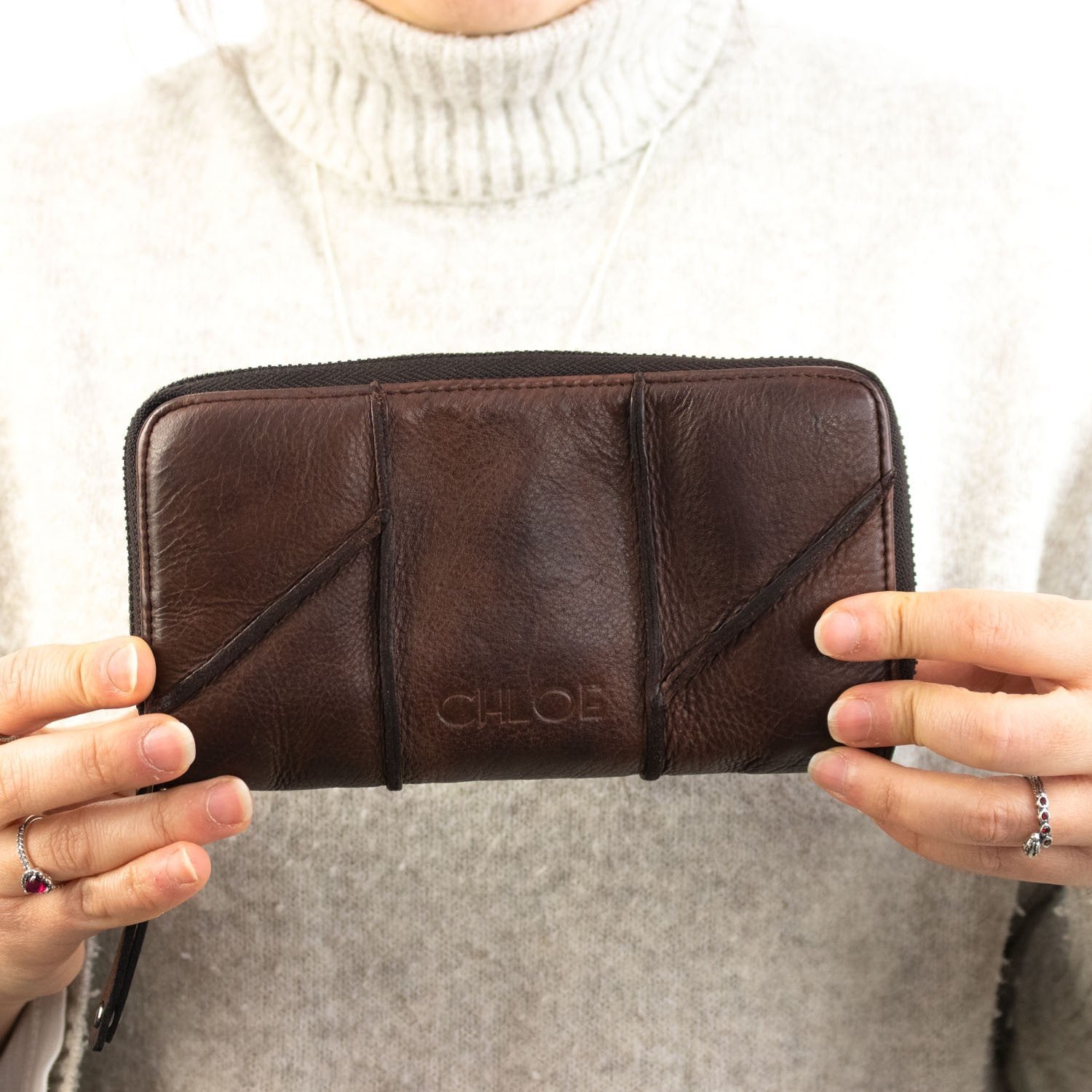 Un billetero super completo de tamaño largo con cierre de cremallera y espacio para organizar todas tus tarjetas, billetes y monedas. Acabado en tonos lisos de piel lavada, fabricado en Piel 100% Vacuno.