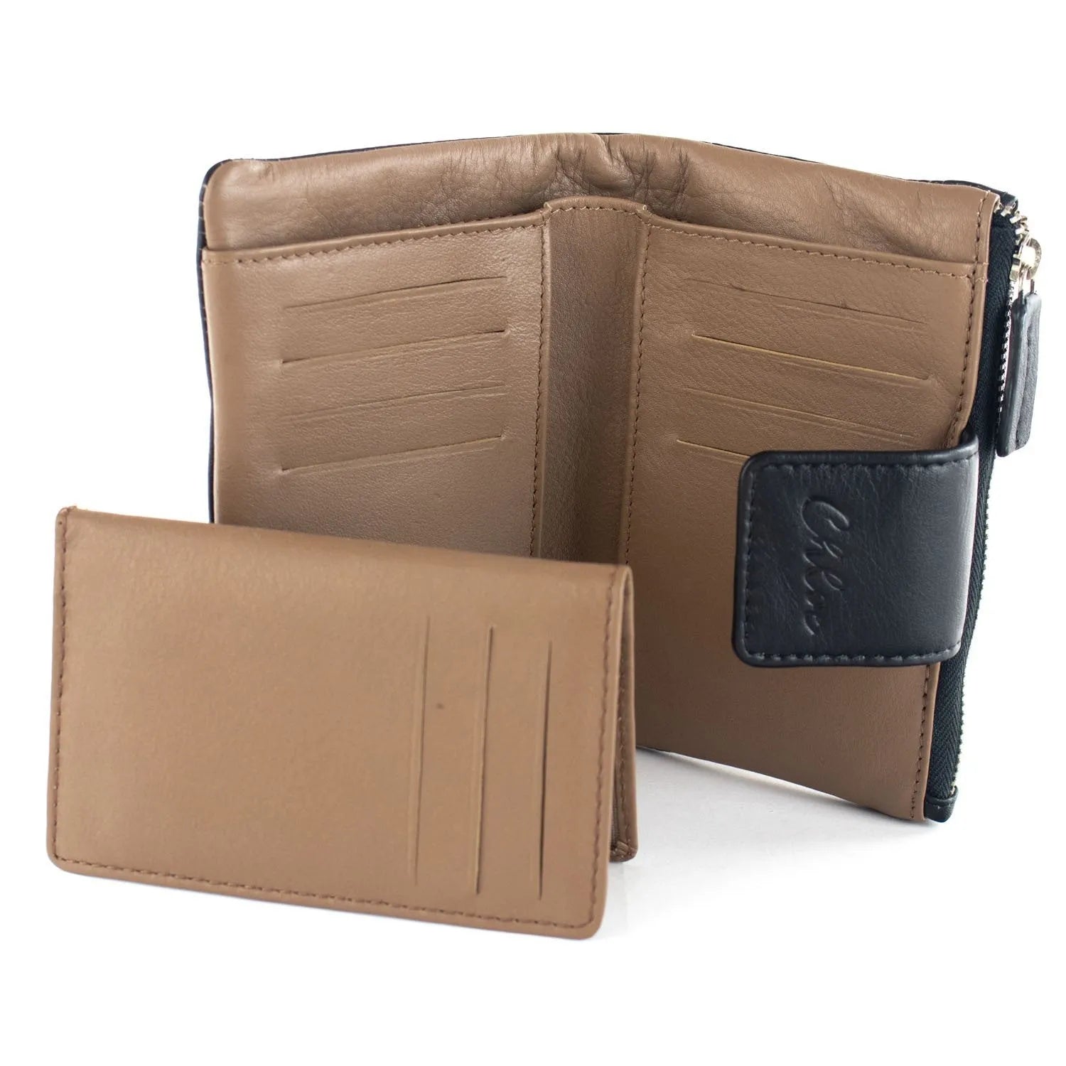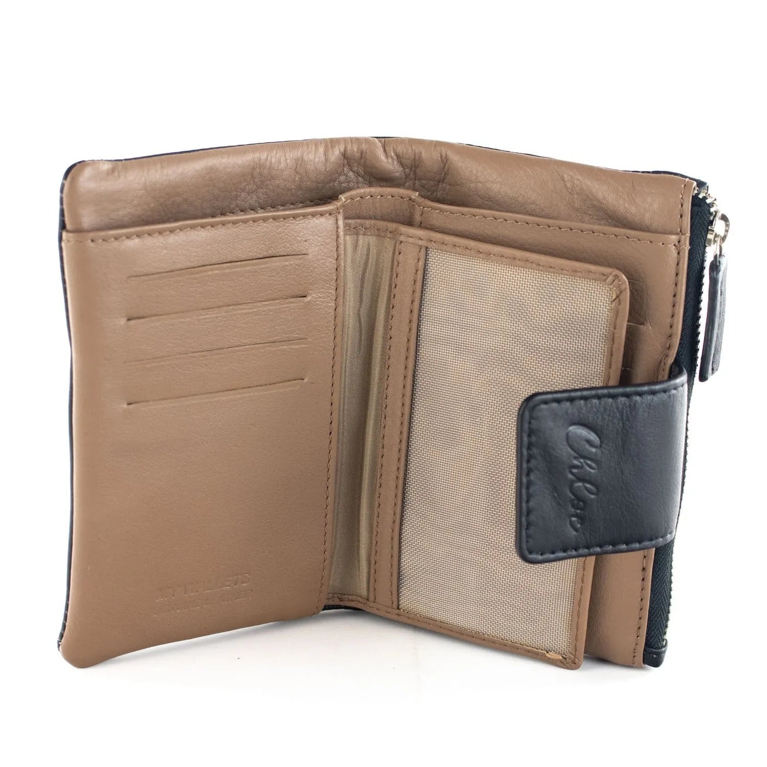 Original Billetero mediano ByChloe Chic con un diseño retro muy original, detalle de pespuntes en el frente y en el broche con detalle de la marca. Realizado en piel 100% vacuno con textura muy suave que te sorprenderá. Su cierre de broche y espacio para 12 tarjetas con extraíble. espacio para billetes y compartimento con cierre de cremallera de seguridad. Amplio compartimento con cierre de cremallera para monedas.