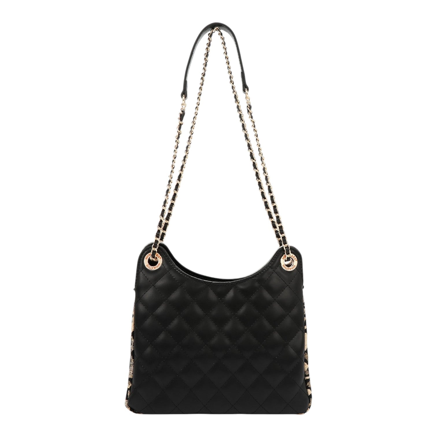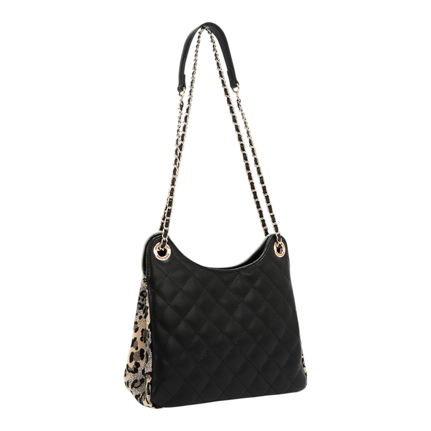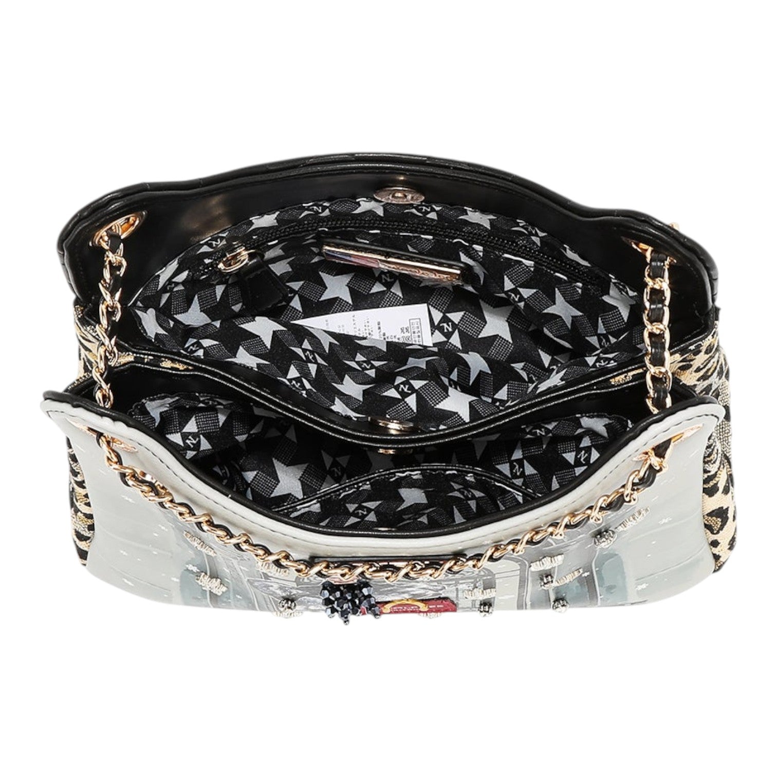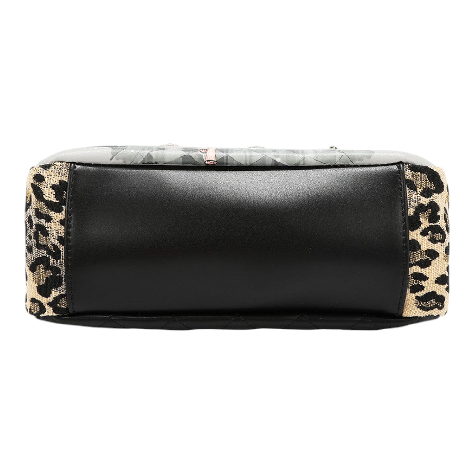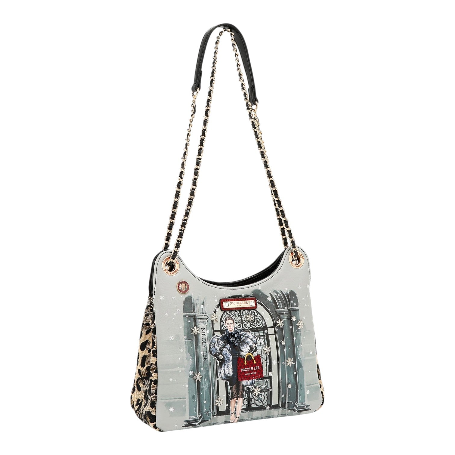 Bolso bandolera Nicole Lee de la nueva colección Moda SnowFlake con cadena que puedes hacer doble para llevar al hombro o estirarla para llevarla en bandolera tiene cierre de broche imantado, doble compartimento separado , lateral en animal print y detalles de pedrería para un efecto 3 dimensiones