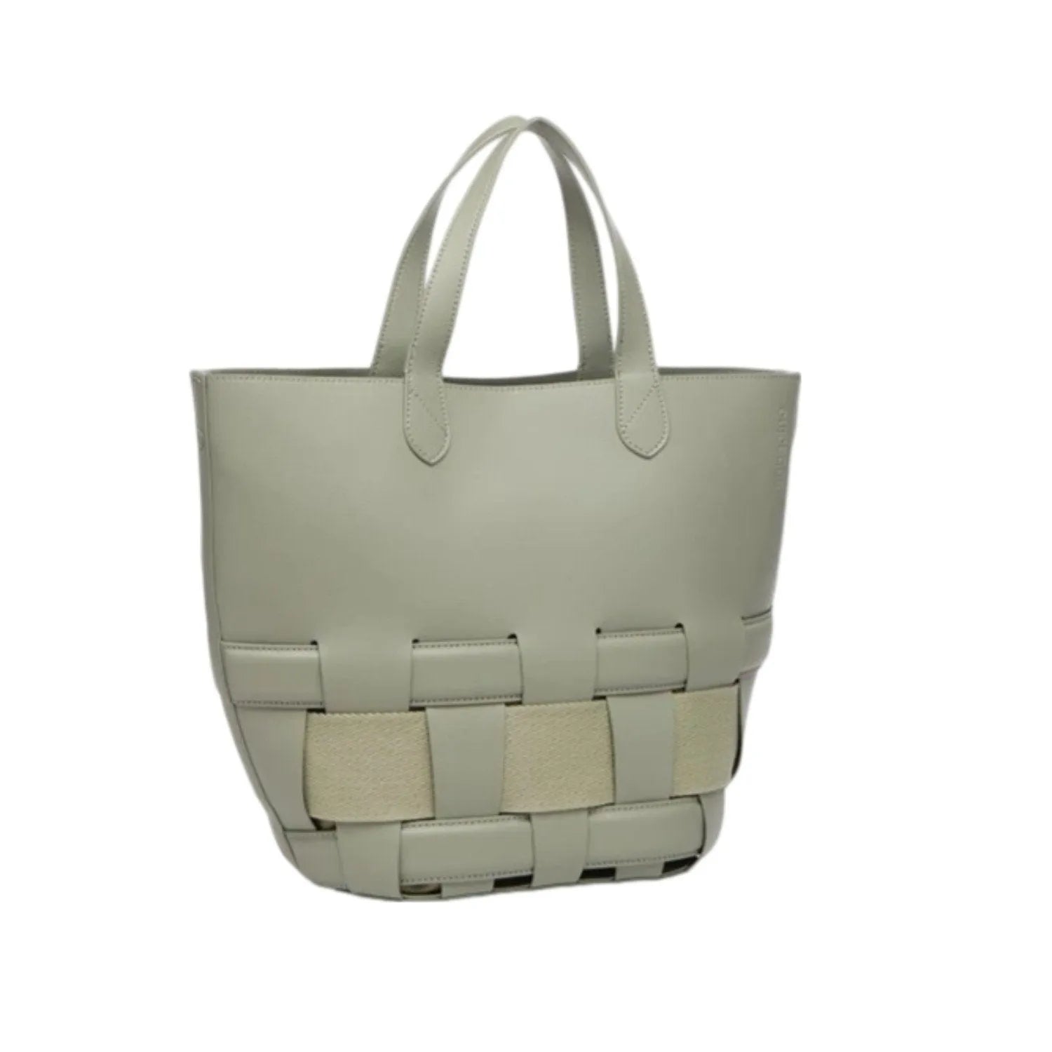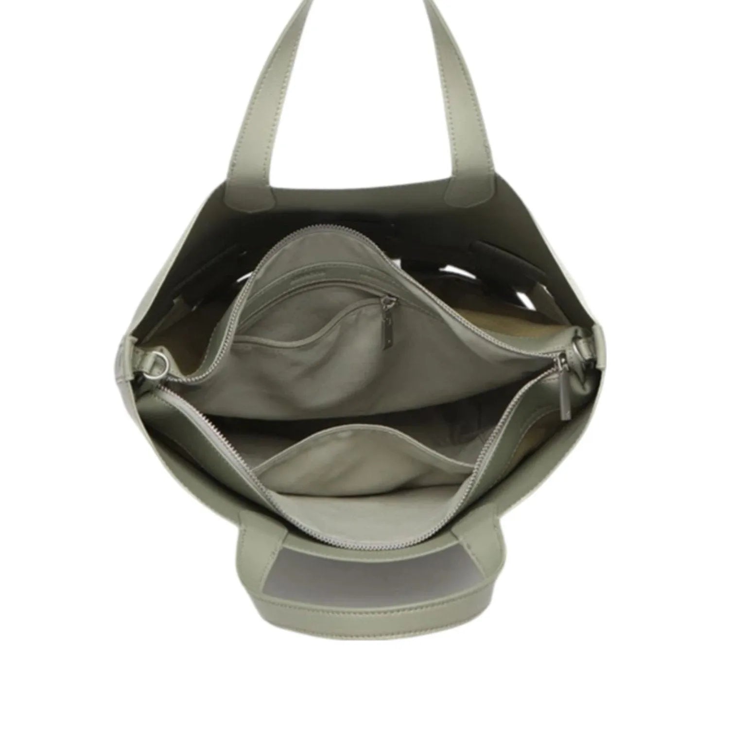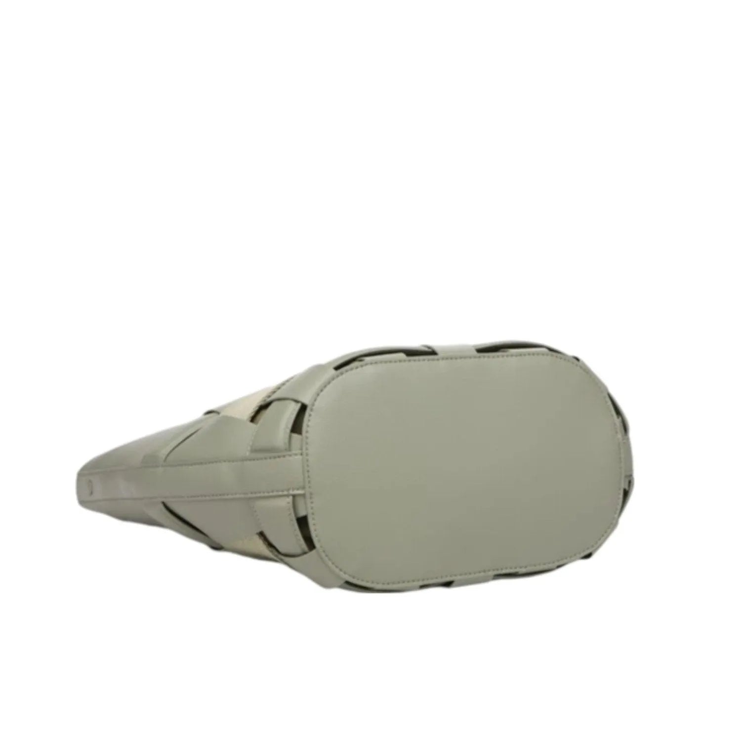 Precioso Bolso shopper trenzado con asas para llevar de mano y bolso interior que puedes usar junto o separado ya que hace de canguro, tiene detalle de trenzado en la parte inferior y un estilo minimalista que lo hace muy actual.