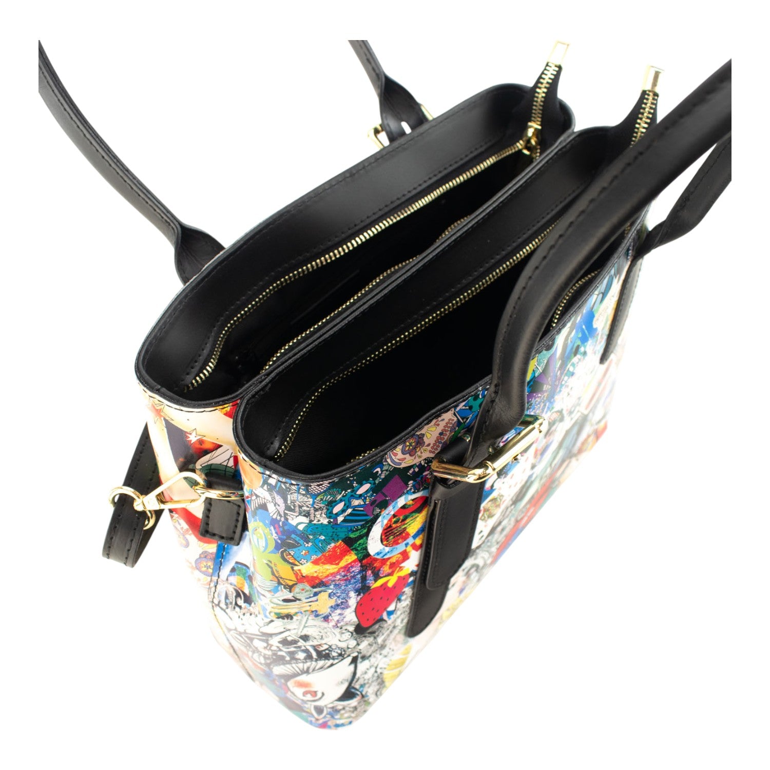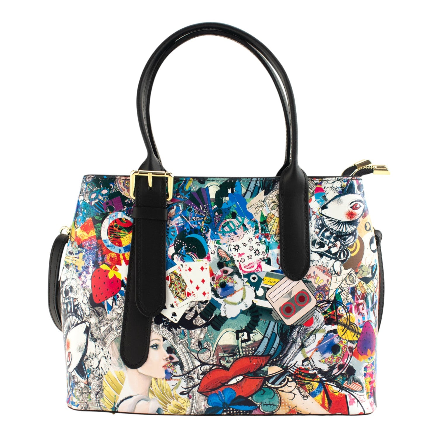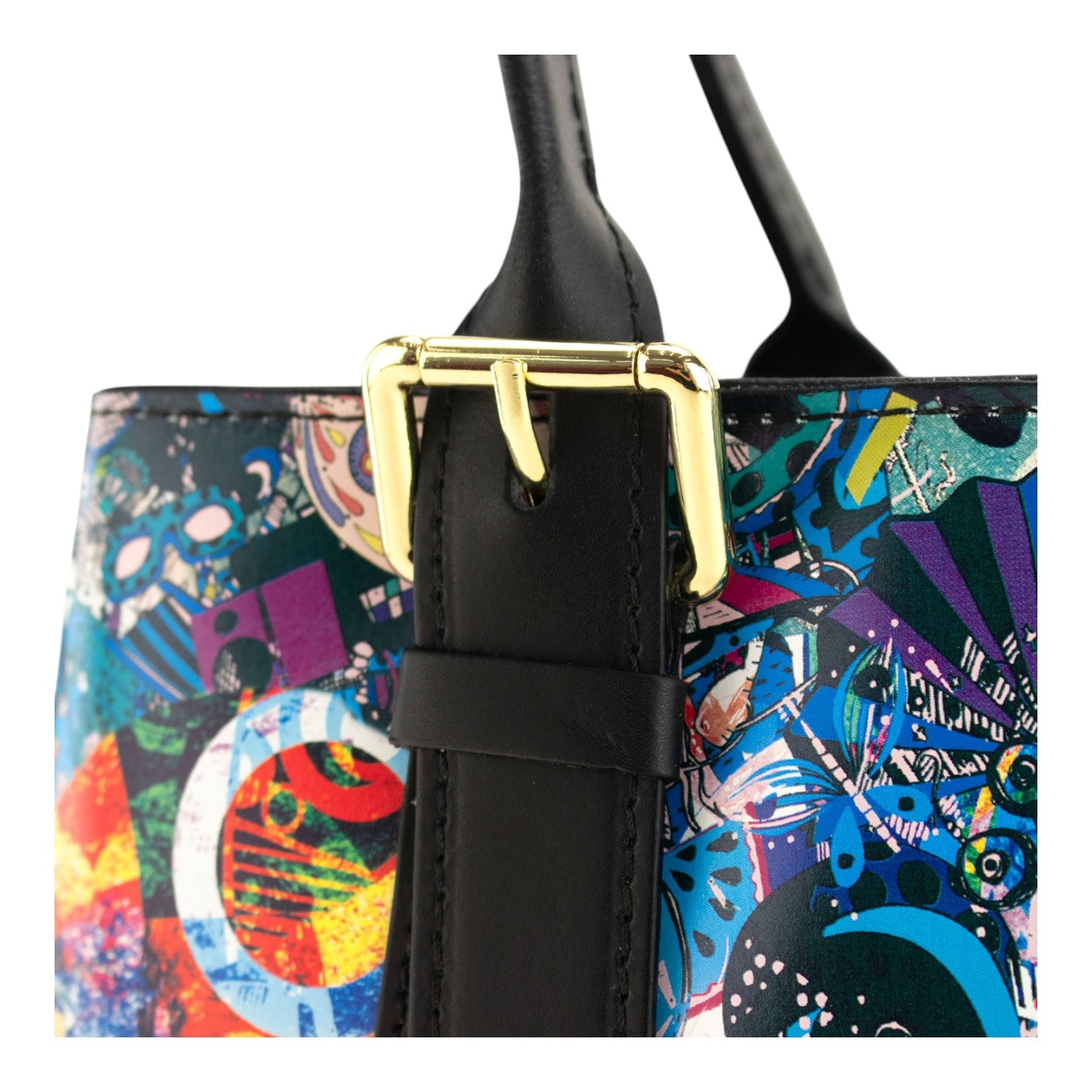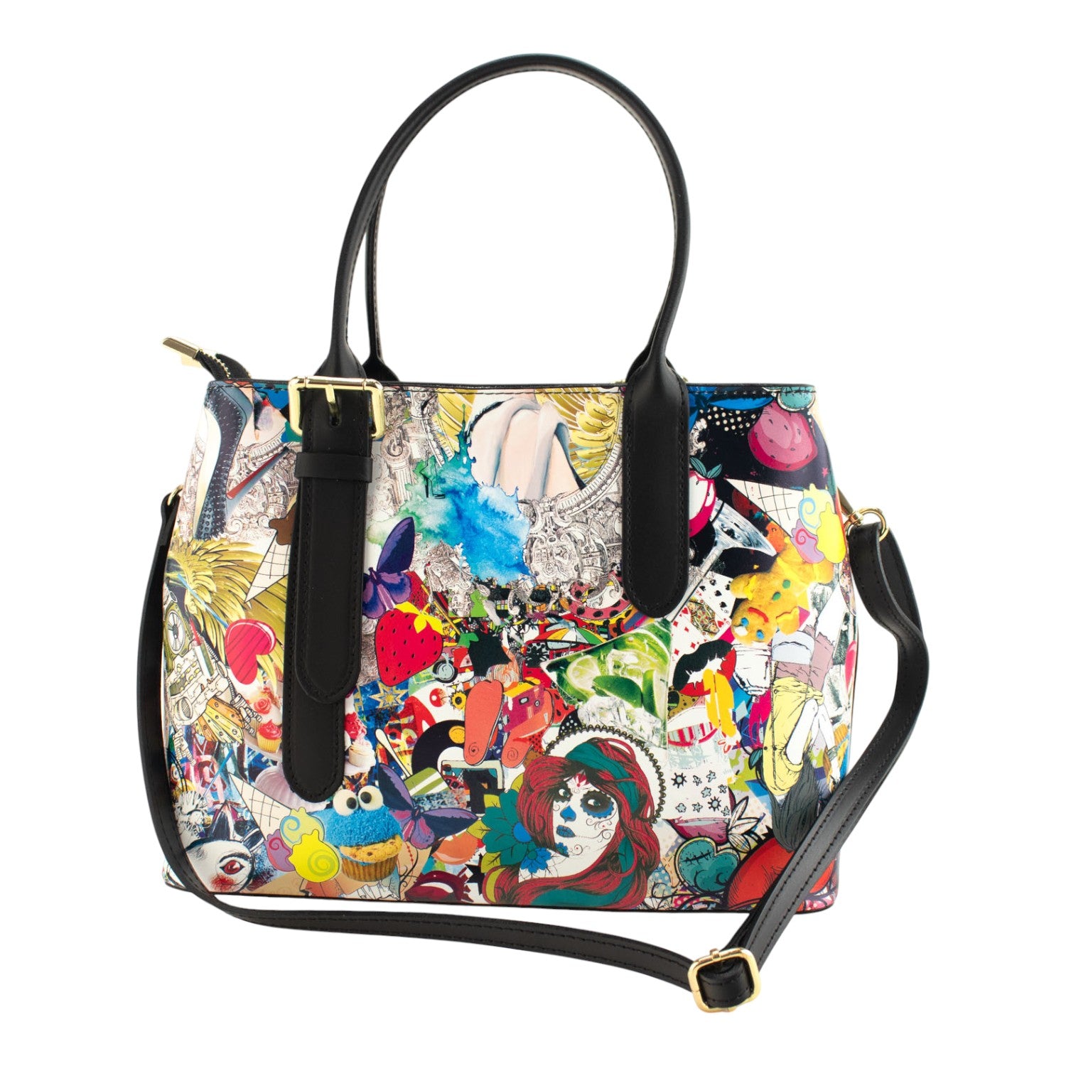 Un bolso muy original para lucir a diario, realizado en Piel 100% genuina vacuno italiana, este bolso está hecho en Italia con una excelente manufactura y calidad, tiene doble compartimento interior amplio con cierre de cremallera y cinta de bandolera adicional ajustable, siendo muy cómodo tanto como bolso de mano así como bandolera.
