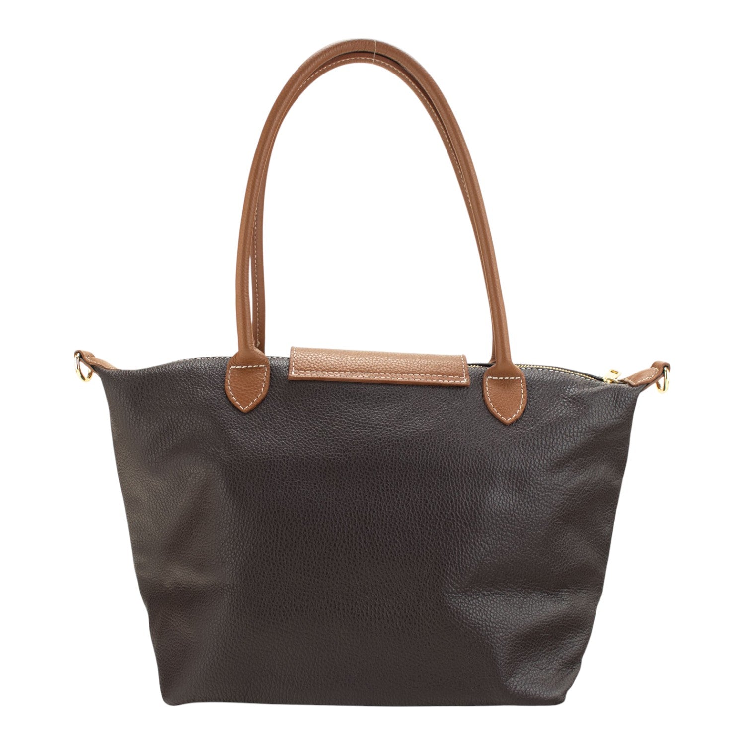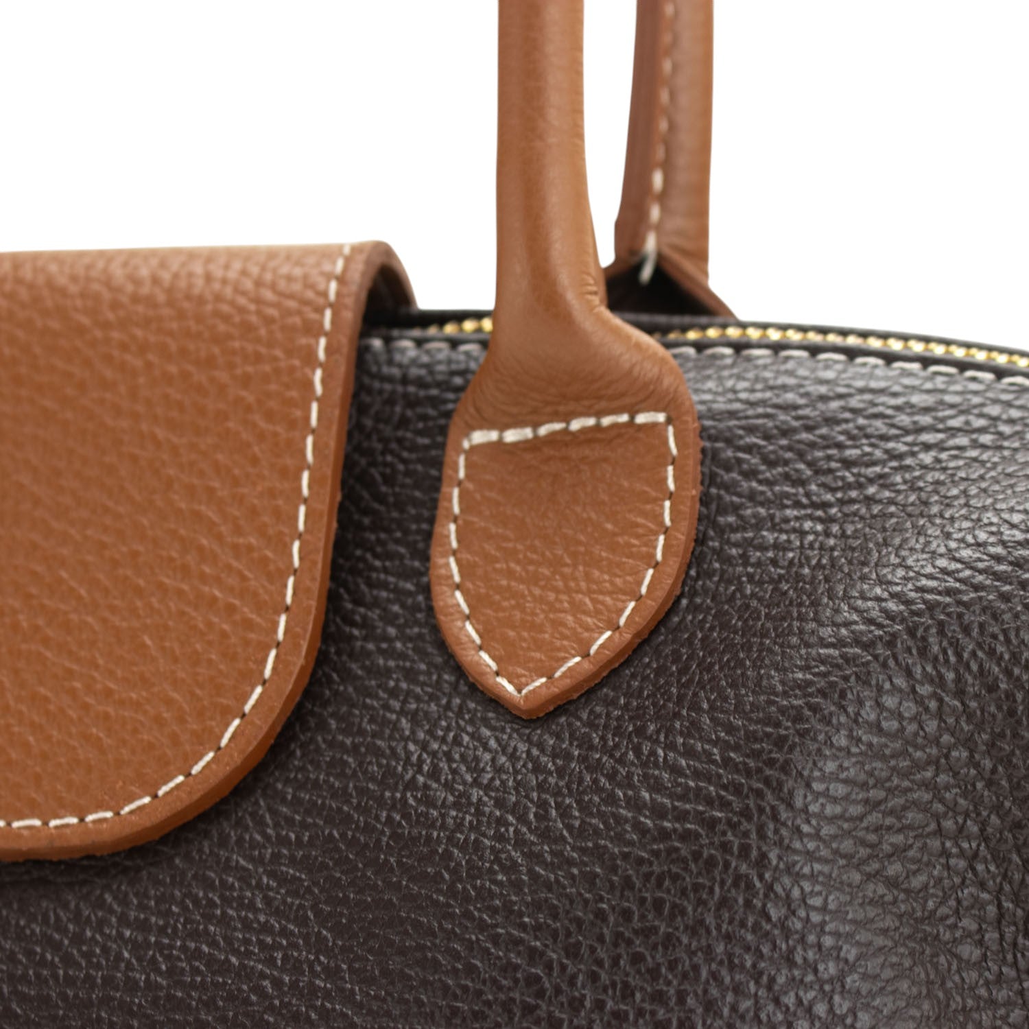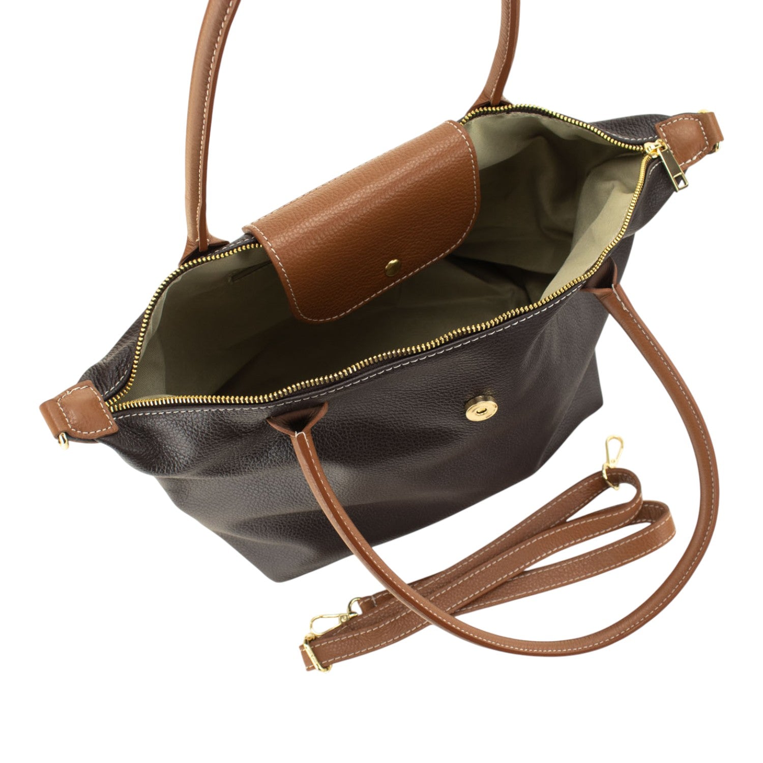Un bolso muy original para lucir a diario, realizado en Piel 100% genuina vacuno italiana, este bolso está hecho en Italia con una excelente manufactura y calidad, tiene un cierre de solapa imantado, con cierre de cremallera interior, doble asa de mano y incluye una preciosa cinta de bandolera ajustable para llevar cruzado o al hombro.
