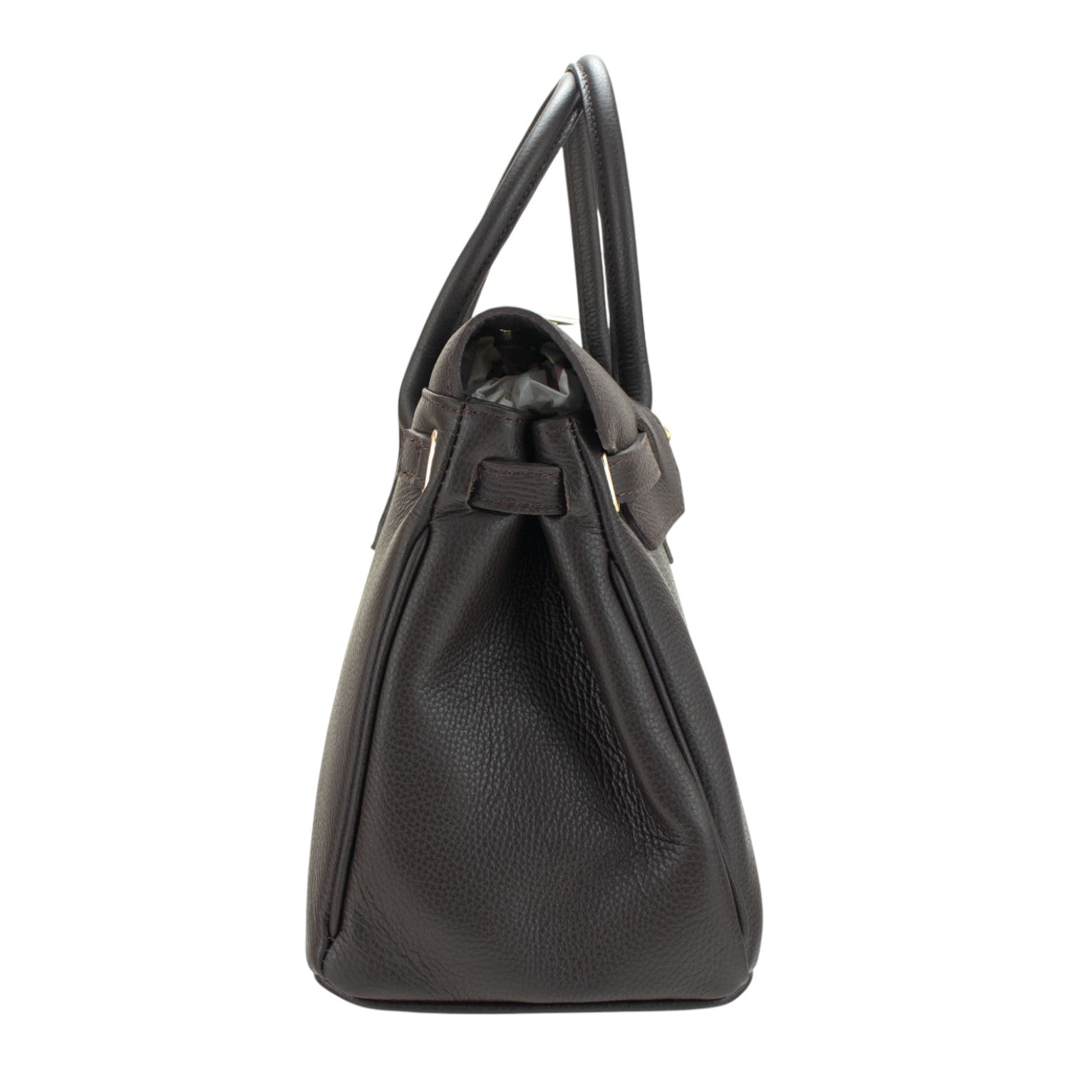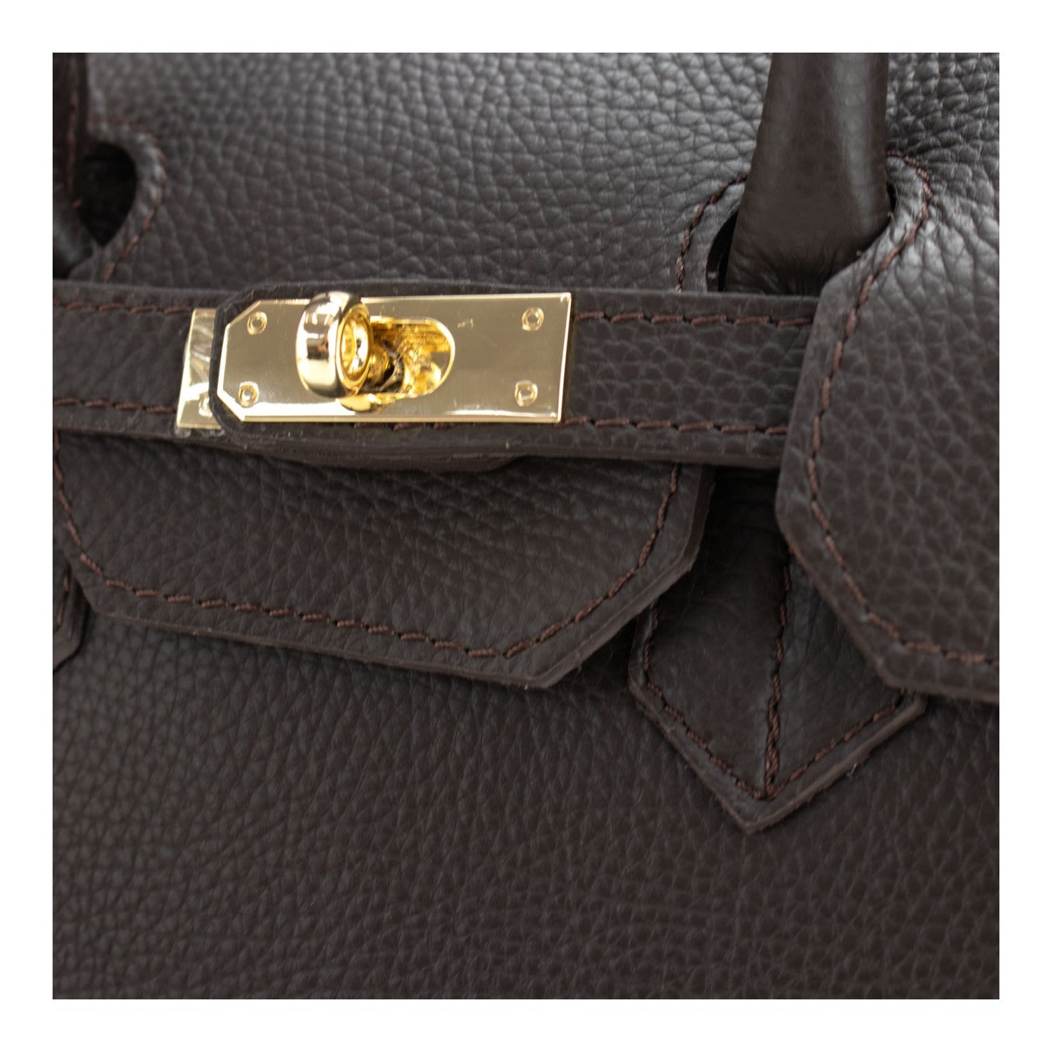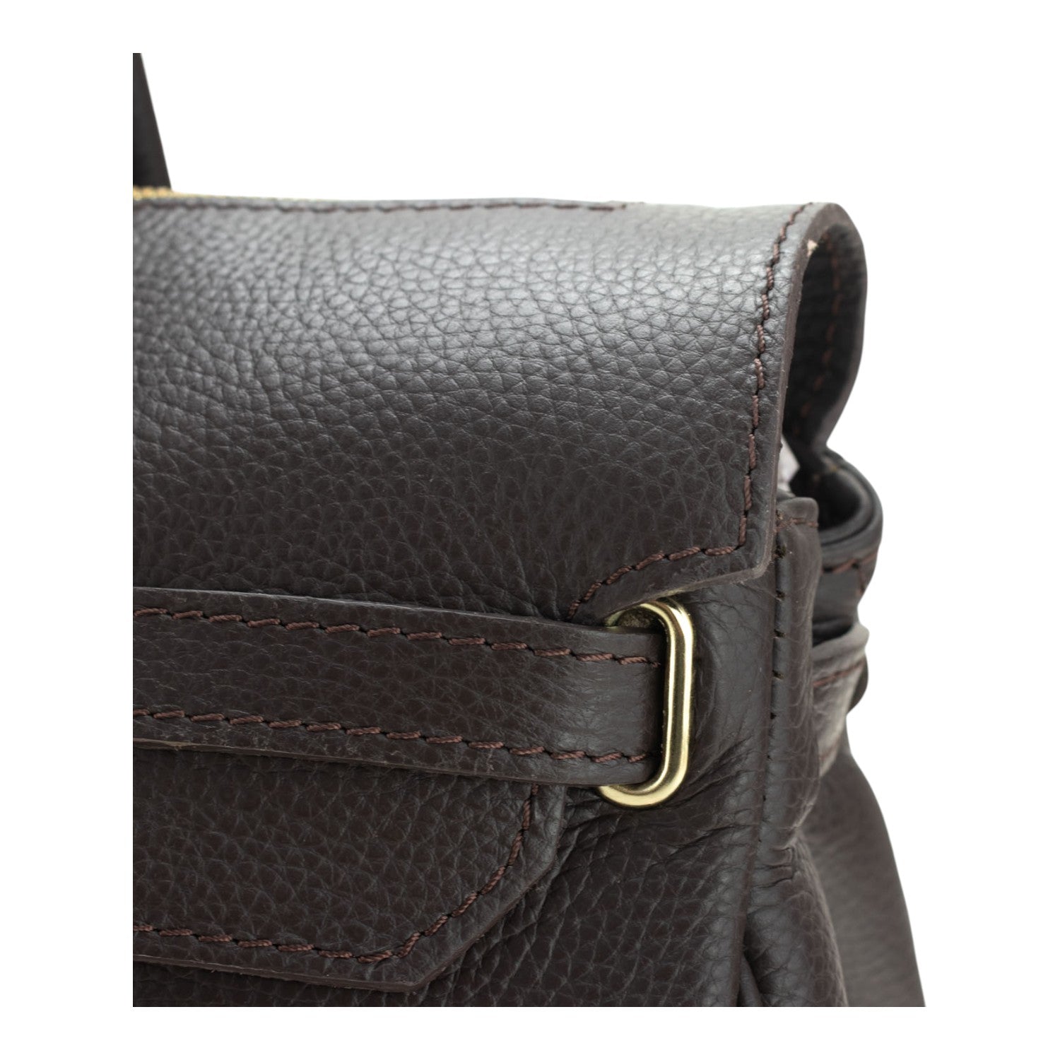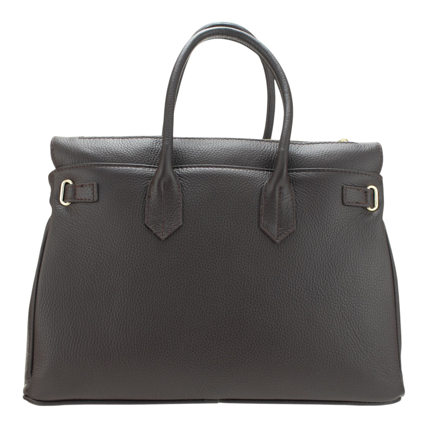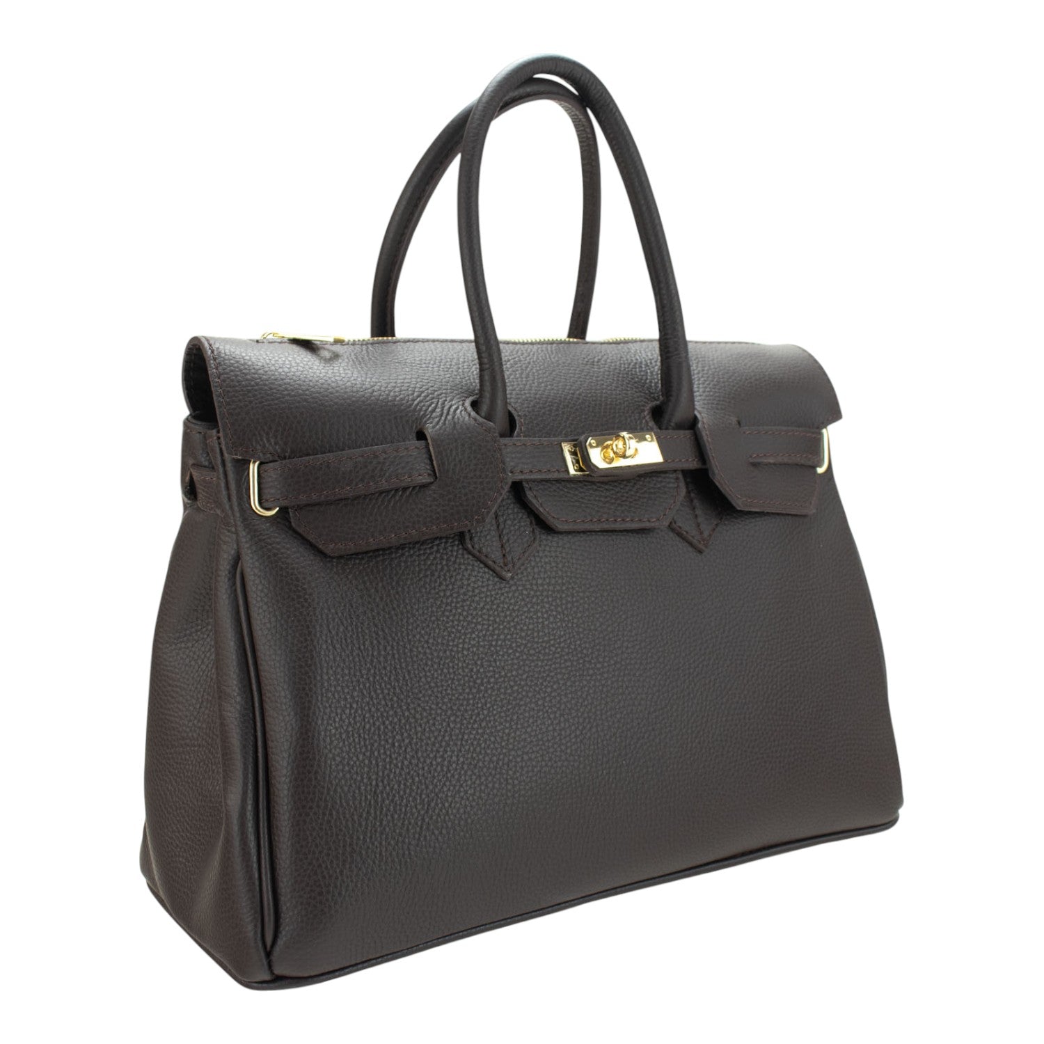 Un bolso muy original para lucir a diario, realizado en Piel 100% genuina vacuno italiana, este bolso está hecho en Italia con una excelente manufactura y calidad, tiene un compartimento interior amplio y cierre de broche además de un cierre superior con cremallera para facilitar el acceso al compartimento principal. Dispone de cómodas asas para llevar de mano.