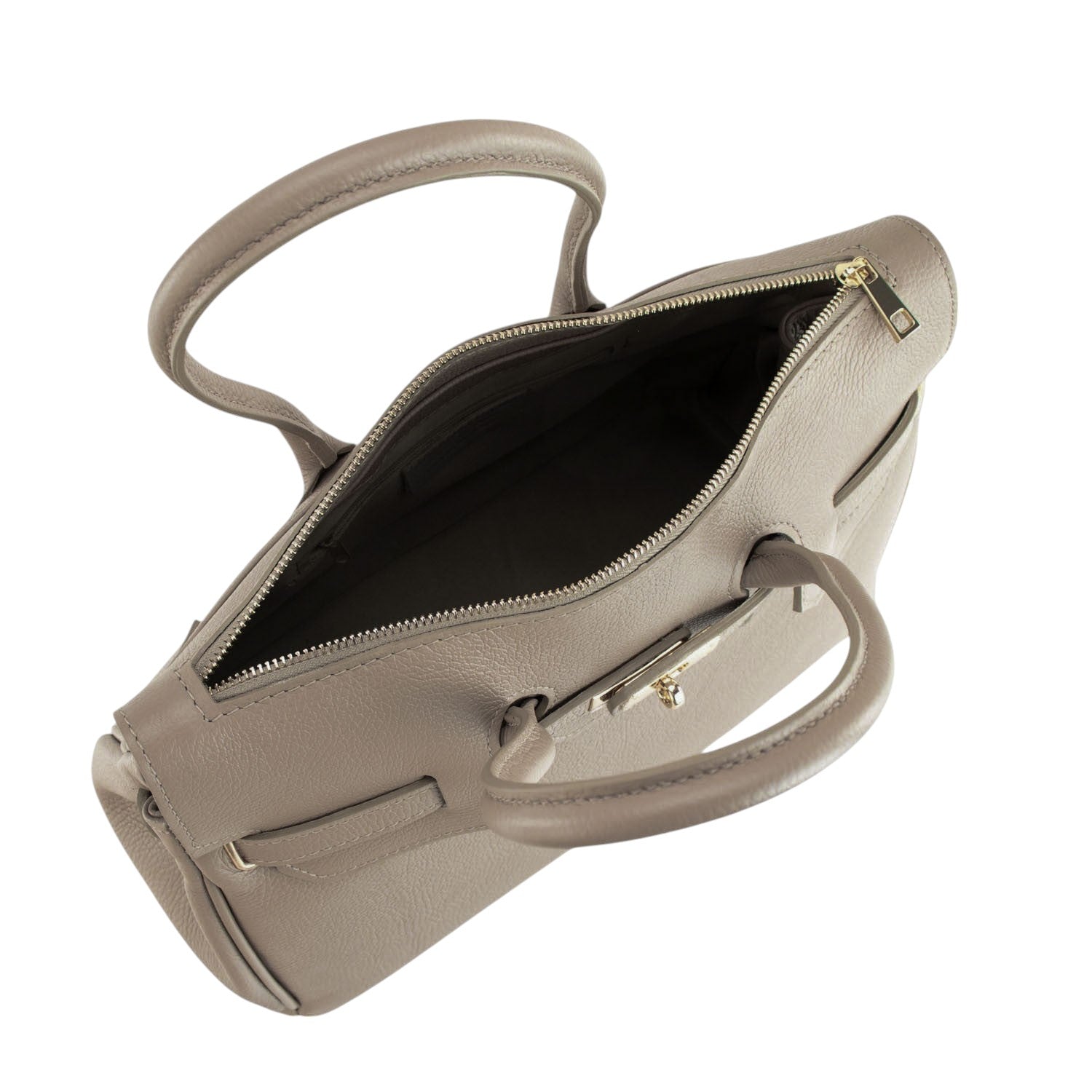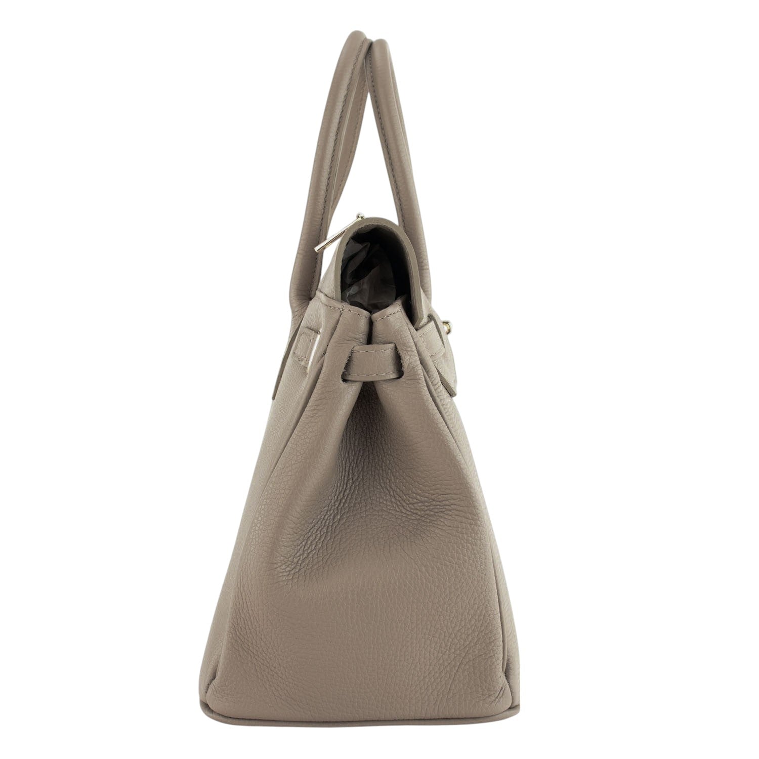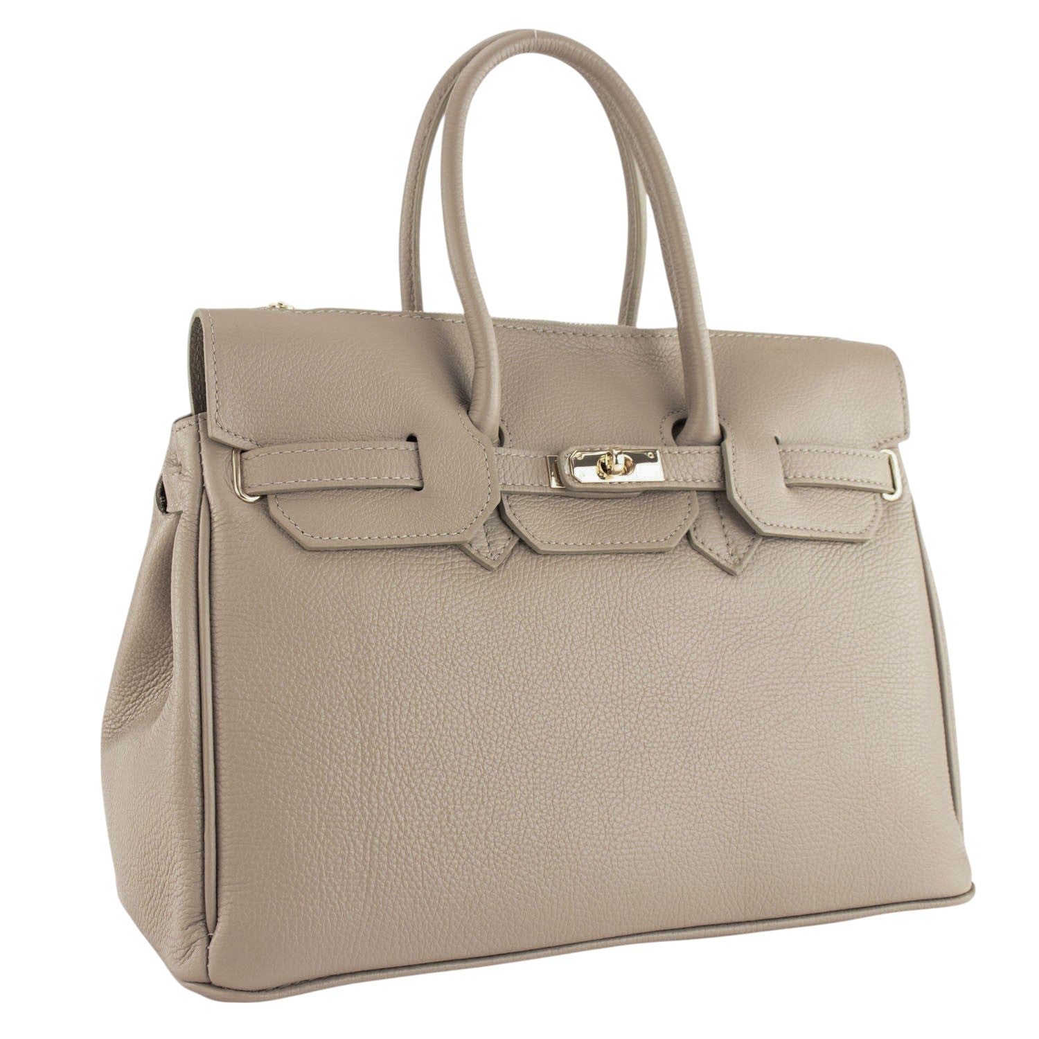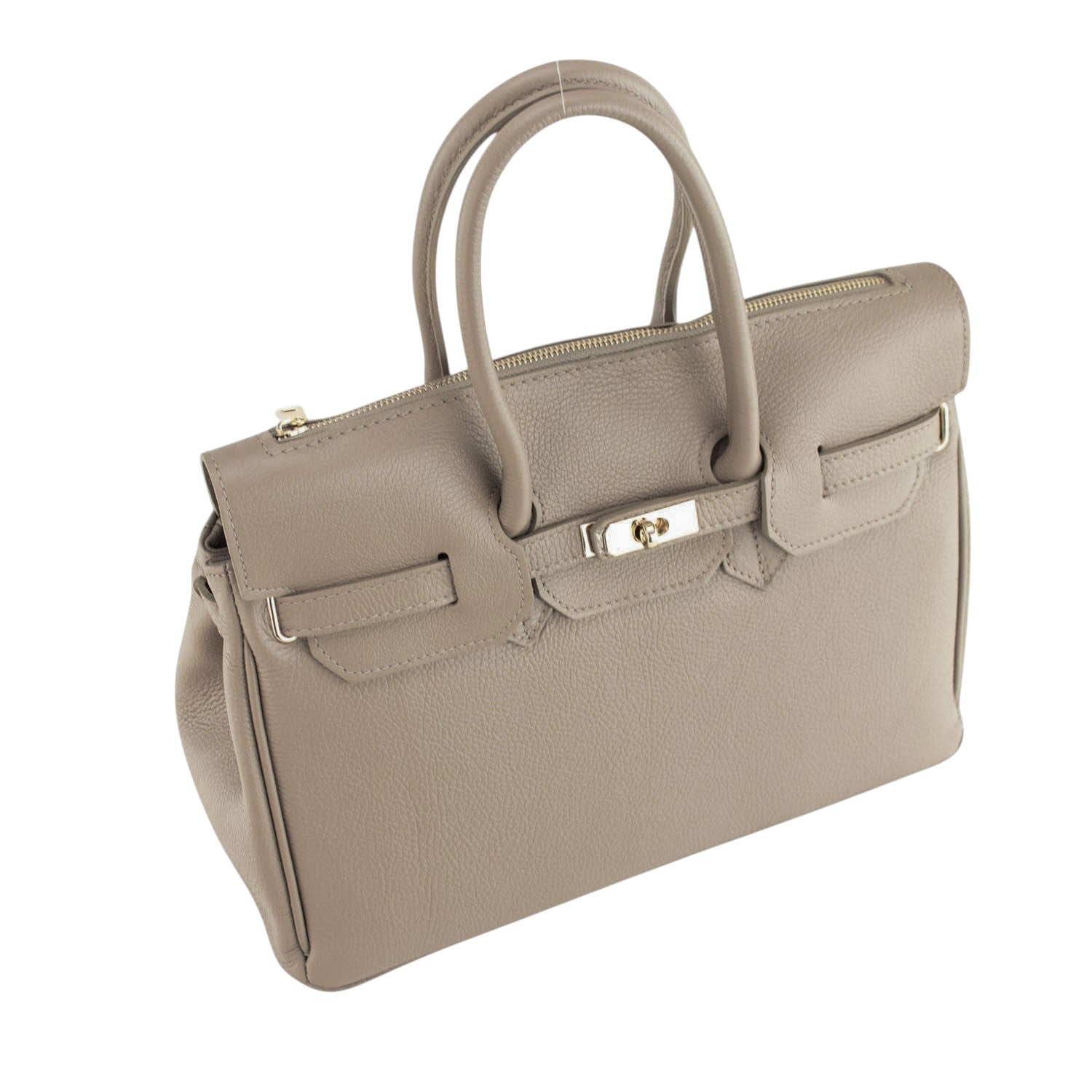 Un bolso muy original para lucir a diario, realizado en Piel 100% genuina vacuno italiana, este bolso está hecho en Italia con una excelente manufactura y calidad, tiene un compartimento interior amplio y cierre de broche además de un cierre superior con cremallera para facilitar el acceso al compartimento principal. Dispone de cómodas asas para llevar de mano.