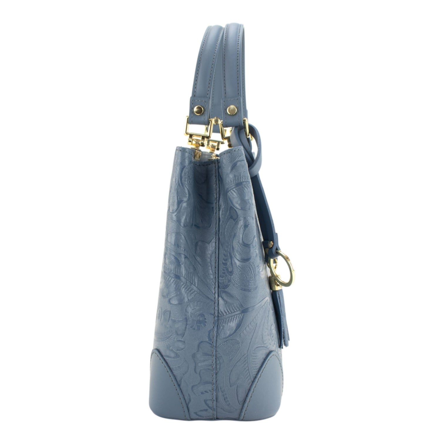 Bolso en piel Pregato Eleganza Grabado Azul Jeans