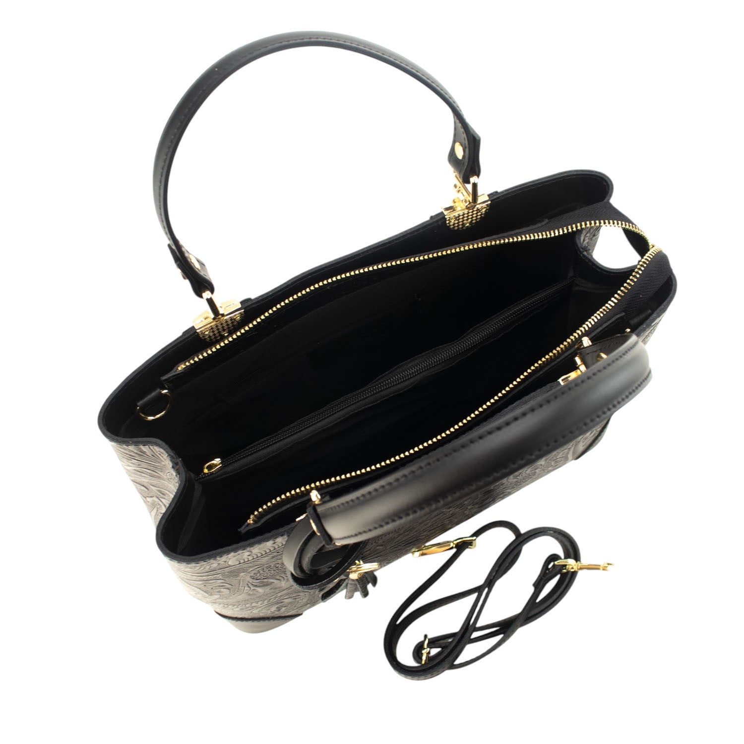 Un bolso muy completo y cómodo para lucir a diario, realizado en Piel 100% genuina vacuno italiana, este bolso está hecho en Italia con una excelente manufactura y calidad, tiene un cierre superior de cremallera con asas de mano y incluye cinta de bandolera adicional, tiene una gran capacidad y un separador intermedio que hace que puedas organizar las cosas en espacios separados.