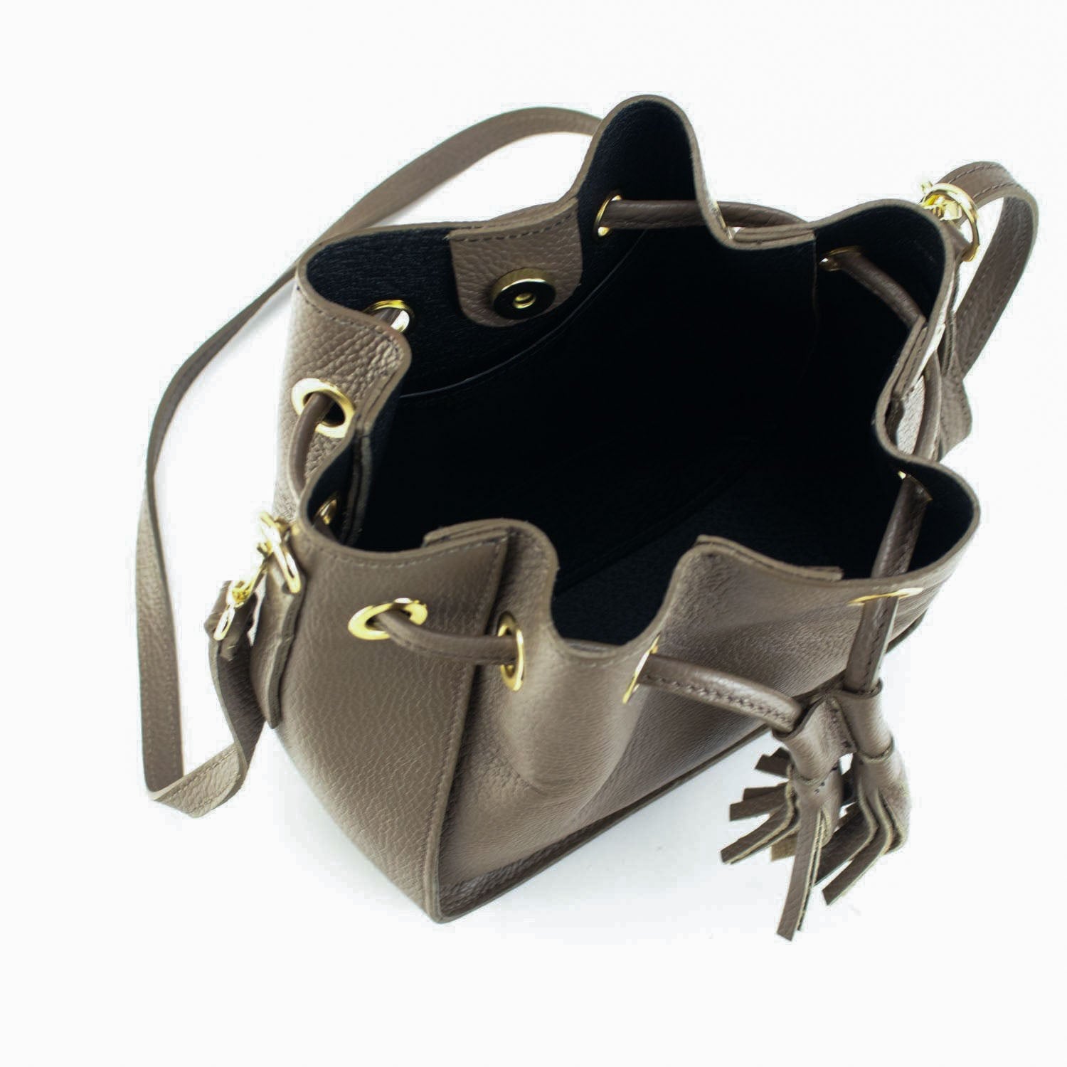 Un bolso muy completo y cómodo para lucir a diario, realizado en Piel 100% genuina vacuno italiana, este bolso está hecho en Italia con una excelente manufactura y calidad, un bolso precioso estilo bucket saquito con cinta de bandolera ajustable y cierre de cuerdas ajustable con cierre imantado. Tiene una capacidad perfecta para llevar todo lo necesario y es super cómodo de llevar. Escoge el tuyo disponible en variedad de tonos ¡Te encantará!