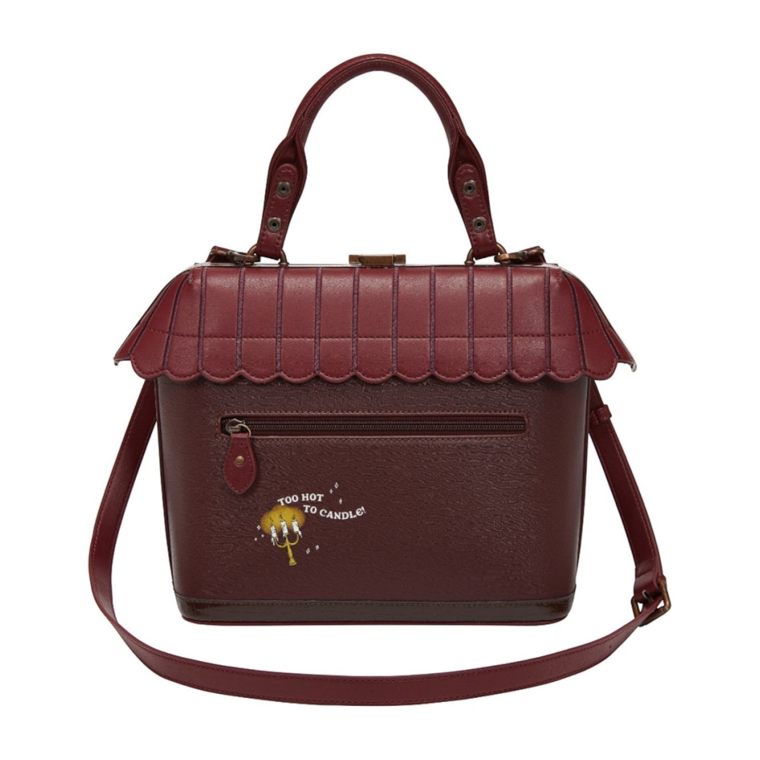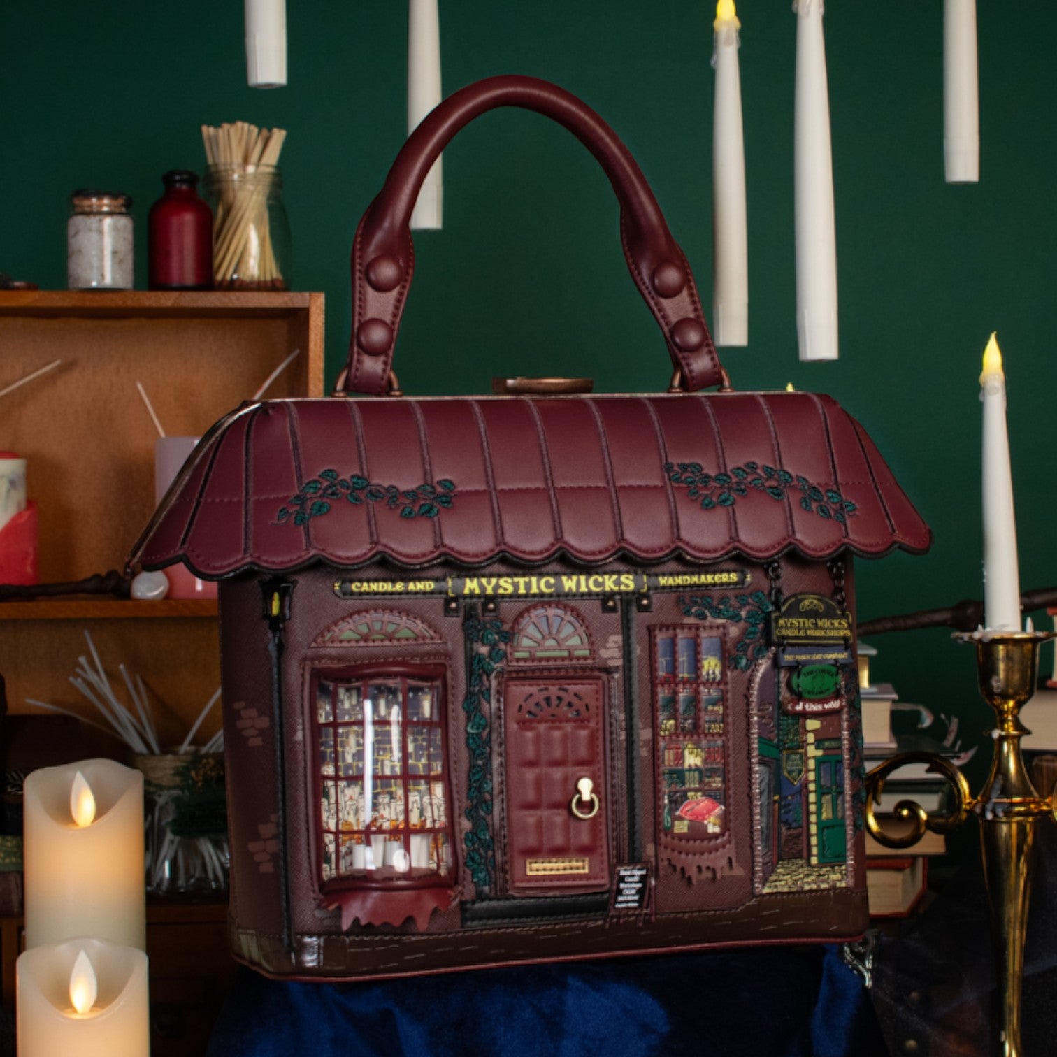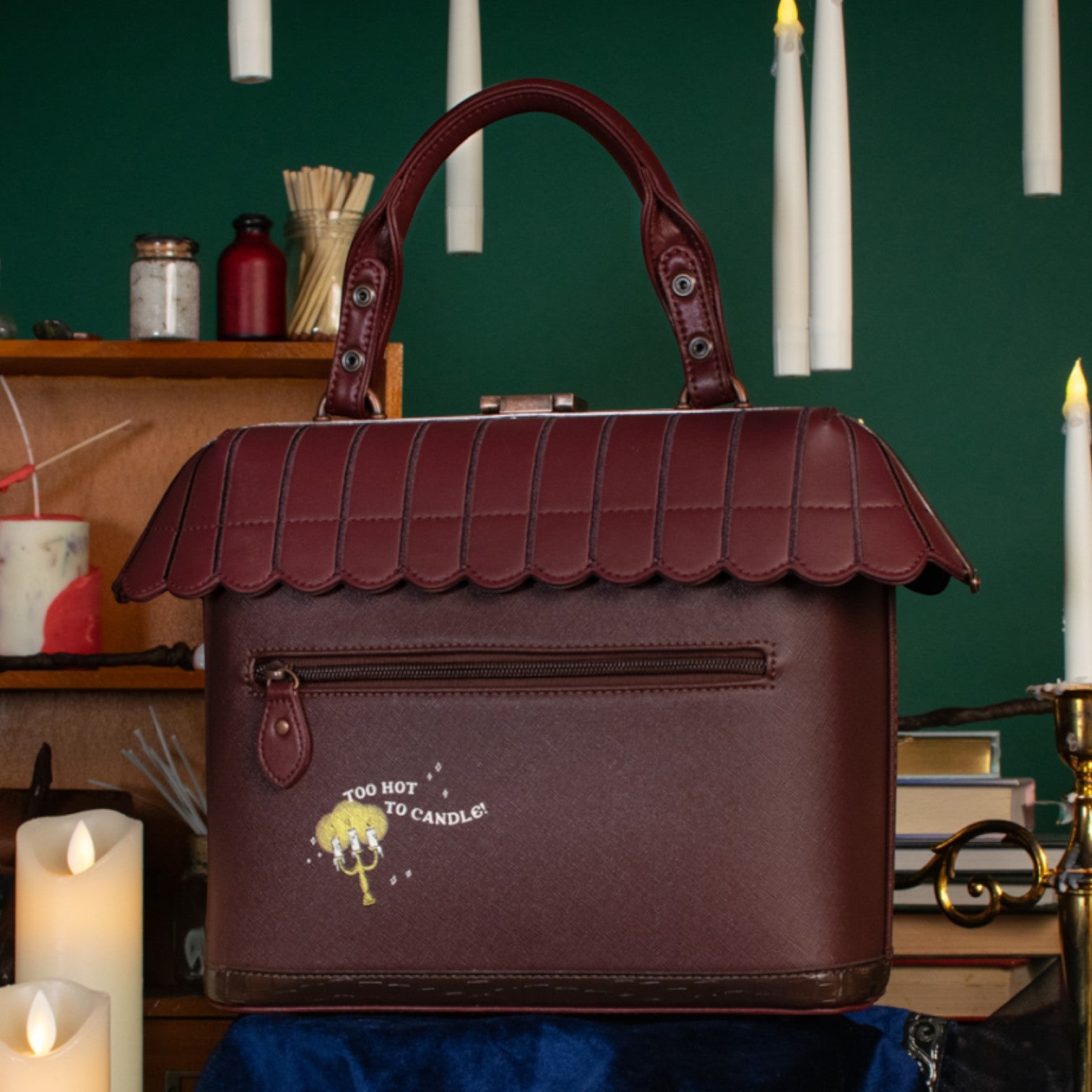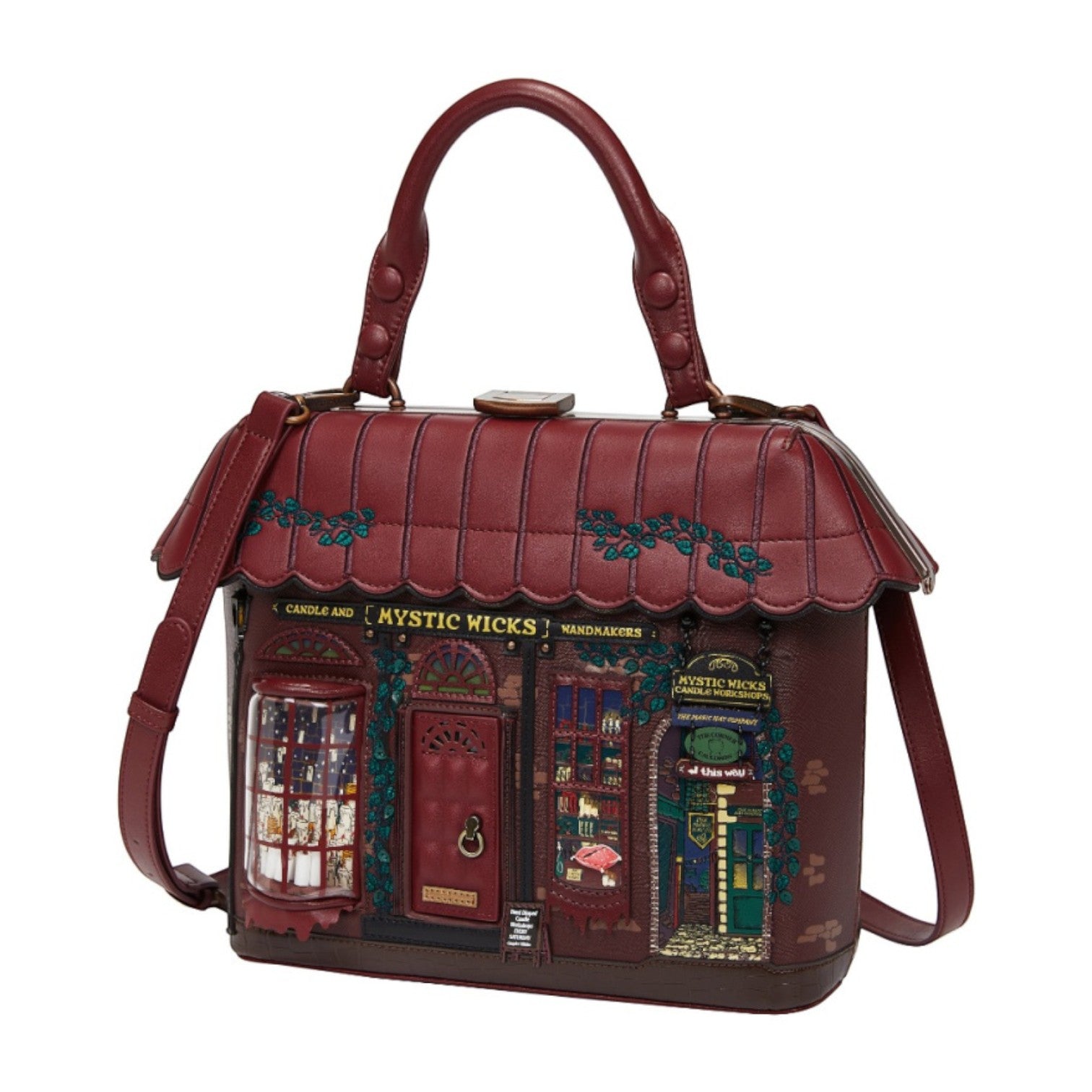 Un bolso que te enamorará nada más tenerlo, está repleto de detalles combinando tonos burdeos inspirado en las tiendas de velas, mechas místicas y varitas, viene con detalles en relieve y bordados que lo hacen único, tiene apertura con cierre semi rígido con broche y cremallera, además de cinta regulable.