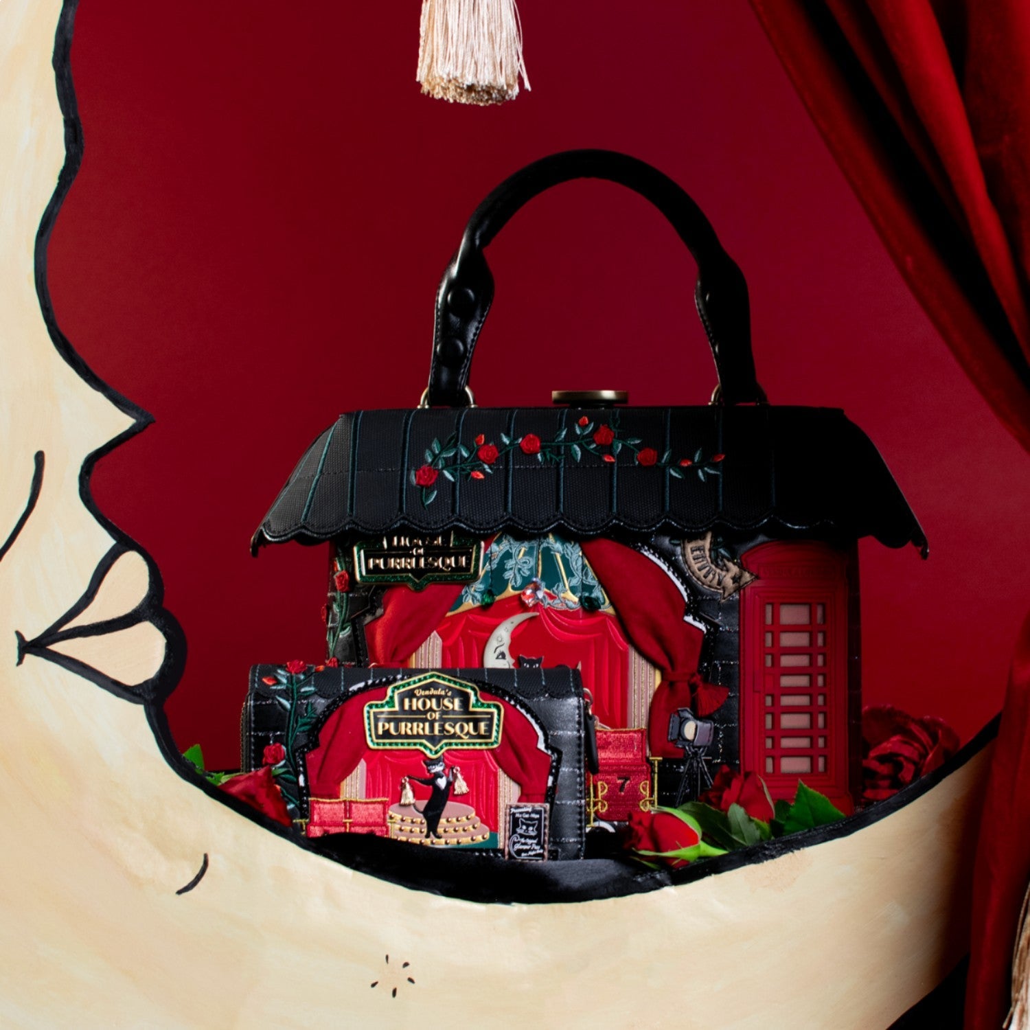 Un bolso que te enamorará nada más tenerlo, está repleto de detalles combinando tonos negro y burdeos inspirado en el Club Purrlesque más famoso de Londres! tiene apertura con cierre semi rígido con broche y cremallera, además de cinta regulable.