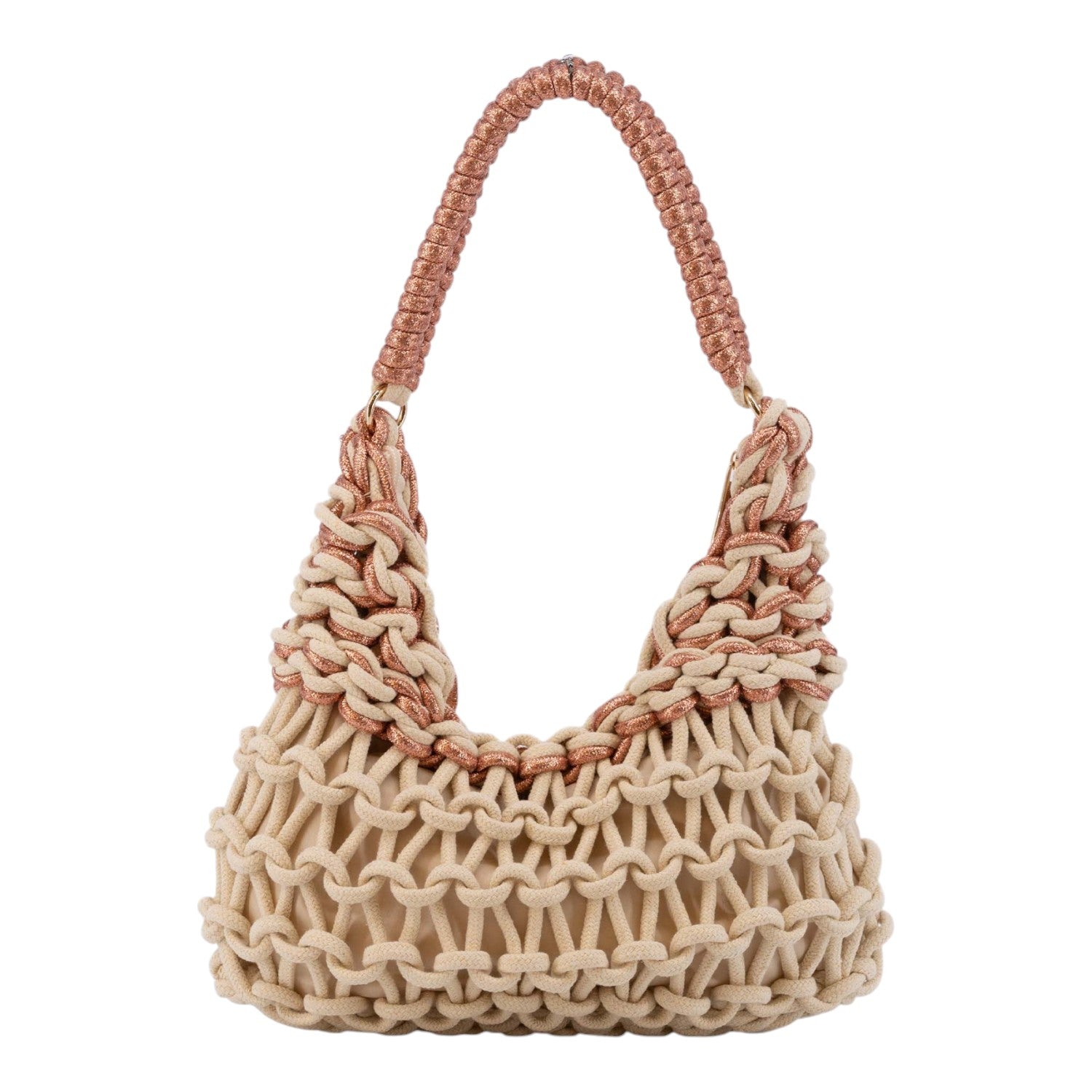 La época estival ha llegado y con ella los bolsos de hilo! Precioso Bolso Hobo Cecile Simosastre en una combinación de hilo en color combinado con hilo metalizado, asa trenzada para llevar al hombro, cierre de cremallera y bolsillos interiores, muy ligero es ideal para tus looks de verano.
