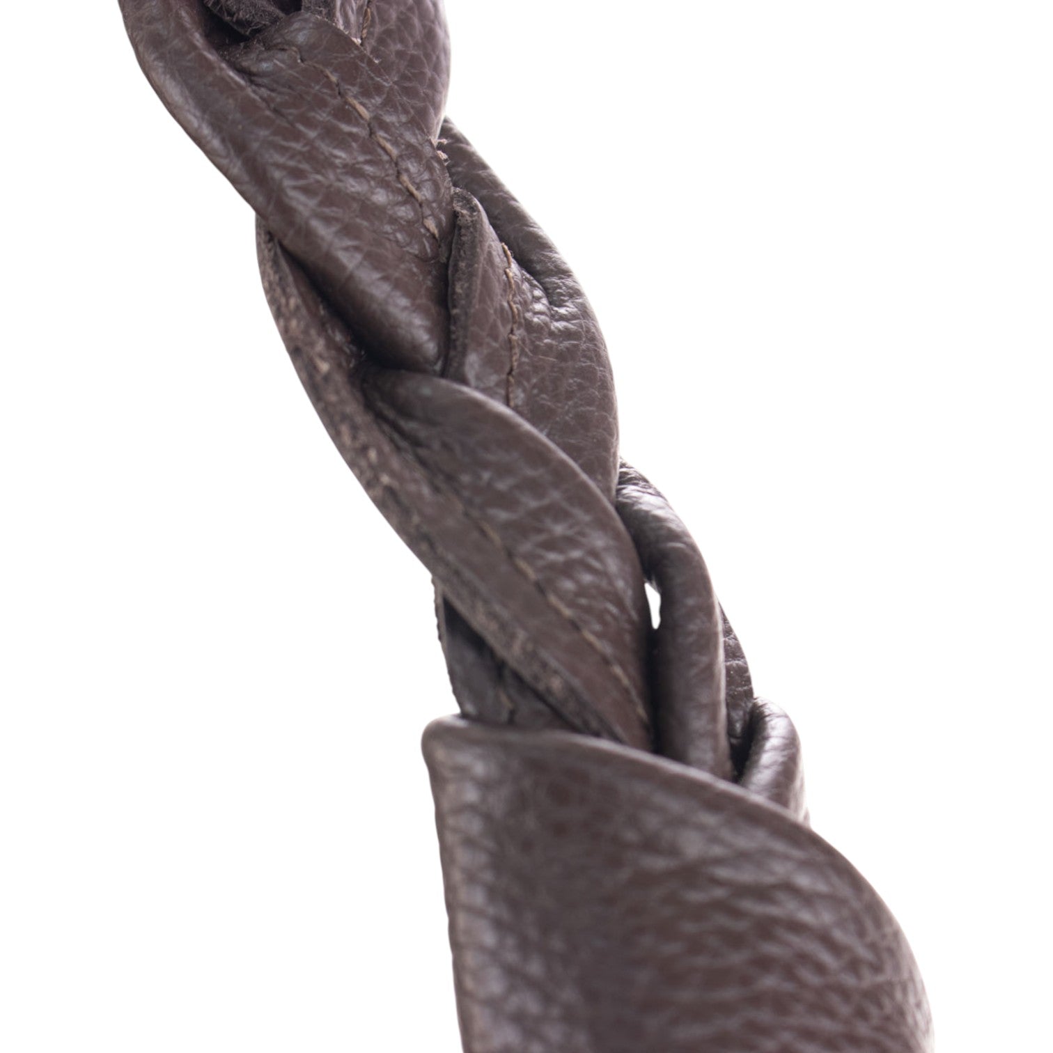 Está confeccionado en suave piel de vacuno ante que destaca por su textura aterciopelada y su acabado de alta calidad. Su característica asa trenzada en piel añade un toque artesanal y distintivo, permitiendo llevarlo cómodamente al hombro. El cierre con imán facilita el acceso al interior manteniendo tus pertenencias seguras.