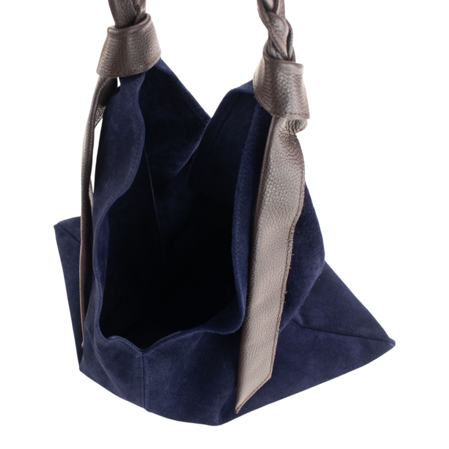 Bolso hobo en Piel Pregato Tressia Azul marino