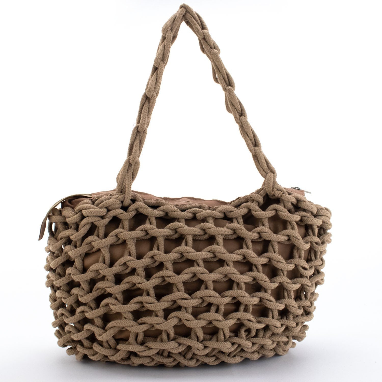 Un bolso super completo estilo shopper de cuerdas trenzadas precioso para lucir a diario, con un compartimento interior con cierre de cremallera y forro de tela. Con asa para llevar al hombro o cruzado. Acabado en tonos lisos de tacto muy agradable ¡Te enamorará!