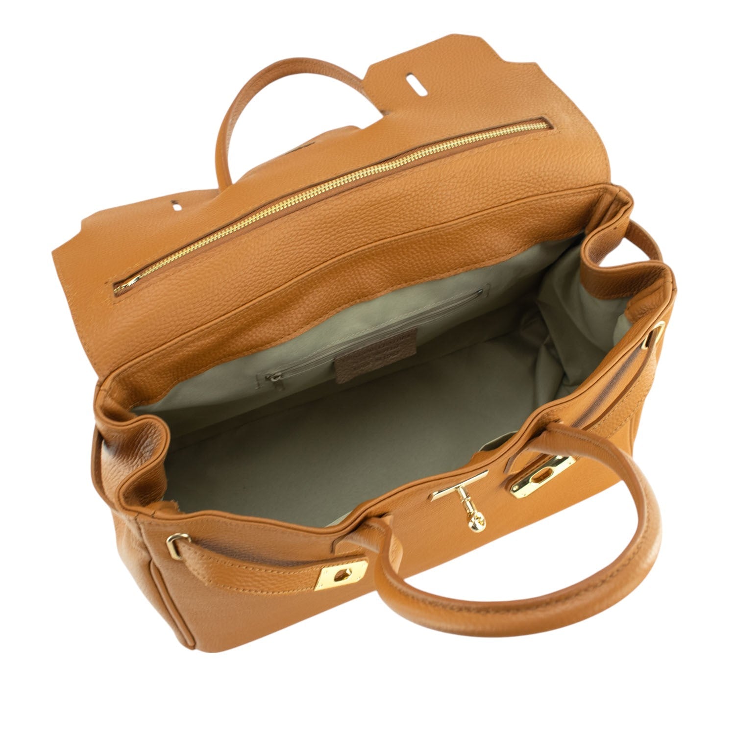Un bolso muy original para lucir a diario, realizado en Piel 100% genuina vacuno italiana, este bolso está hecho en Italia con una excelente manufactura y calidad, tiene un compartimento interior amplio y cierre de broche además de un cierre superior con cremallera para facilitar el acceso al compartimento principal. Dispone de cómodas asas para llevar de mano.