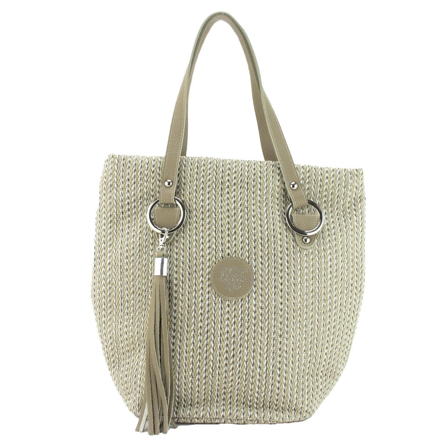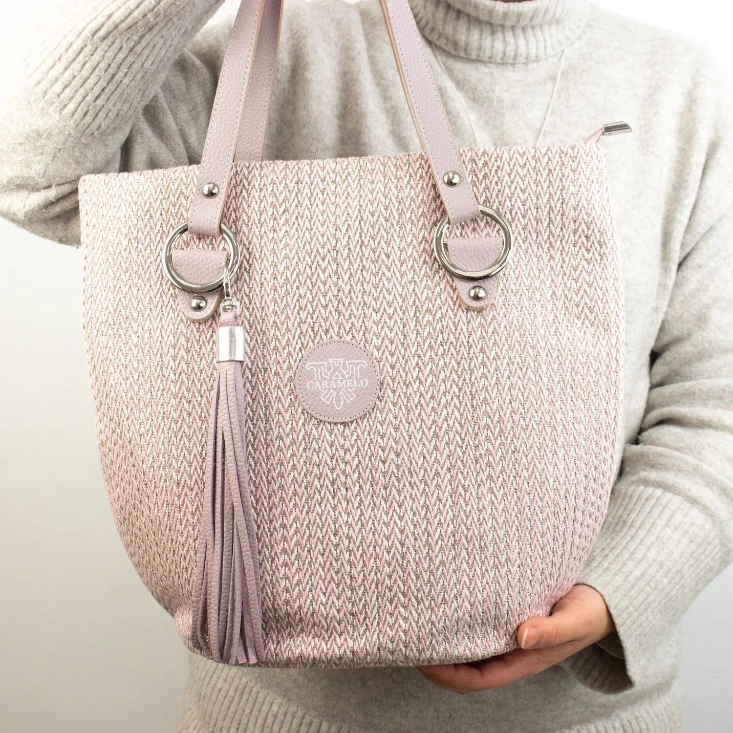 Te encantará este modelo de nueva colección de la firma Caramelo realizado en rafia Recitex con detalle de trenzado con doble tonalidad ideal para esta temporada, cierre de cremallera y doble asa para llevar al hombro, muy ligero y espacioso. Los detalles como el pom pom, el logo, y las asas son de piel 100%.