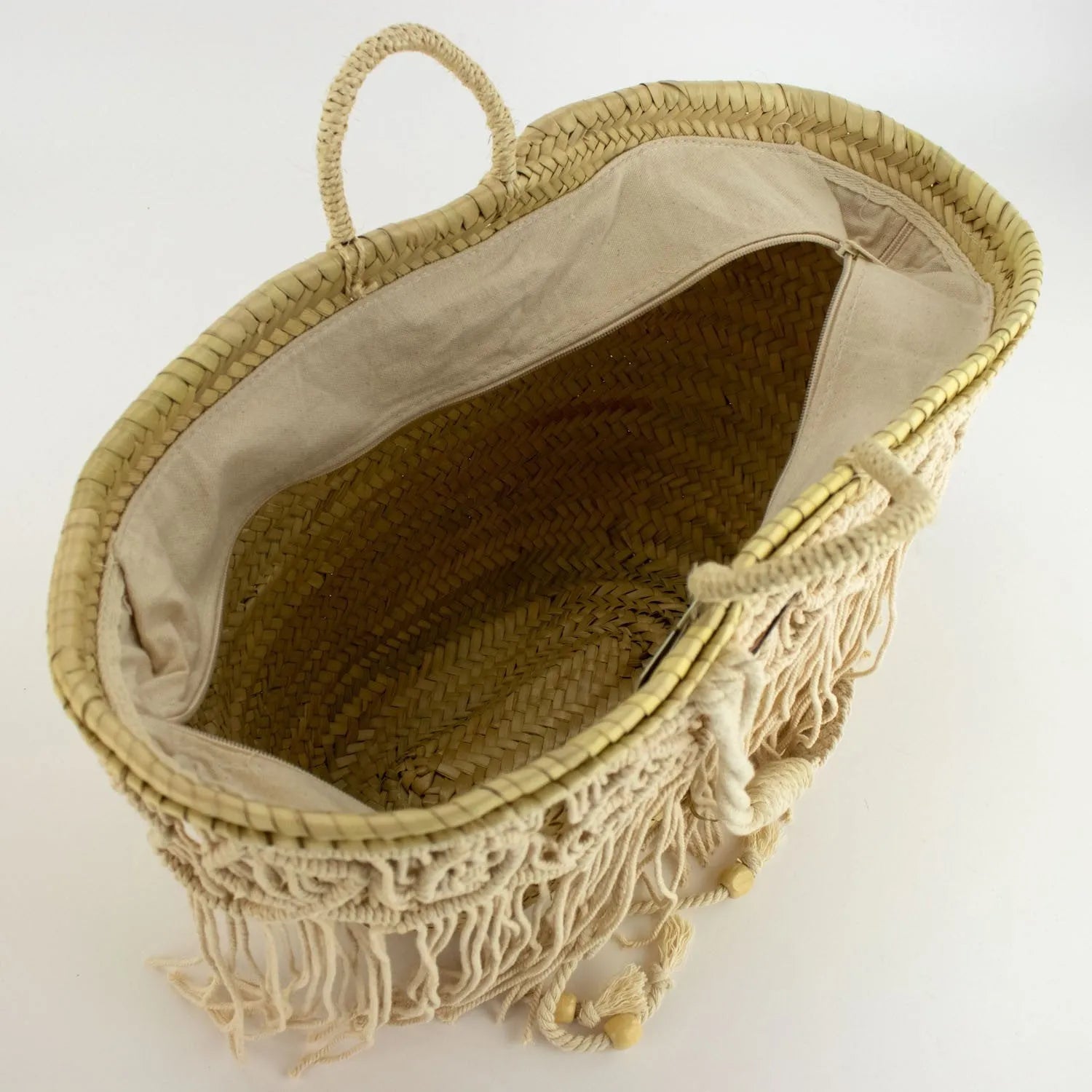 Combina este precioso Capazo grande Simosastre Hippie Chic, un capazo de tamaño grande muy original con doble asa de mano y doble asa de hombro larga. Con un compartimento con cierre de cremallera. Decorado con flecos y preciosos trenzados muy originales ¡Te encantará!