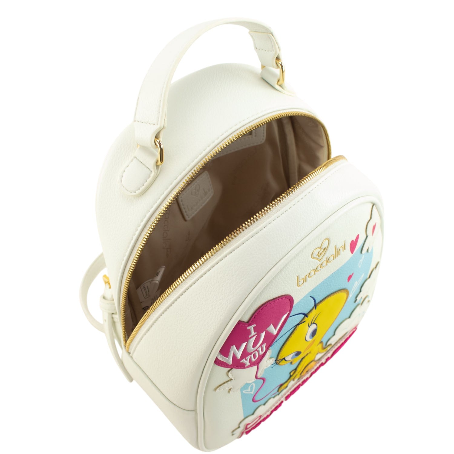 Braccialini nos sorprende con una nueva Colaboración de Looney Tunes, esta esperada colección se compone de Bolsos, mochilas con los diseños clásicos de tus personajes favoritos!! Sorprende con esta preciosa Mochila Braccialini Looney Tunes Piolín, con asa superior para llevar de mano, compartimento con cremallera, diseño frontal espectacular y asas regulables a la altura deseada.