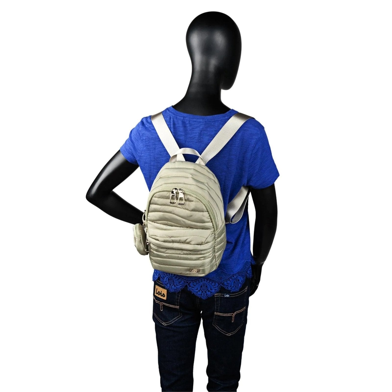 Una mochila perfecta para llevar a diario. Dispone de cómodas asas ajustables y un compartimento interior con cierre de cremallera y bolsillo frontal. Incluye un bonito monedero a juego de regalo. Acabado en textura ondulada muy moderno ¡Te encantará!
