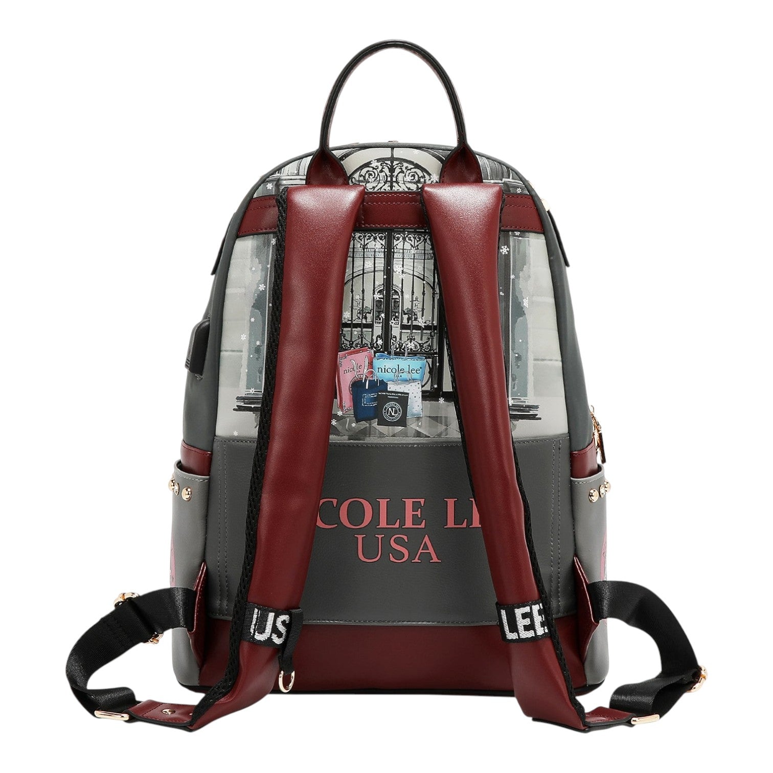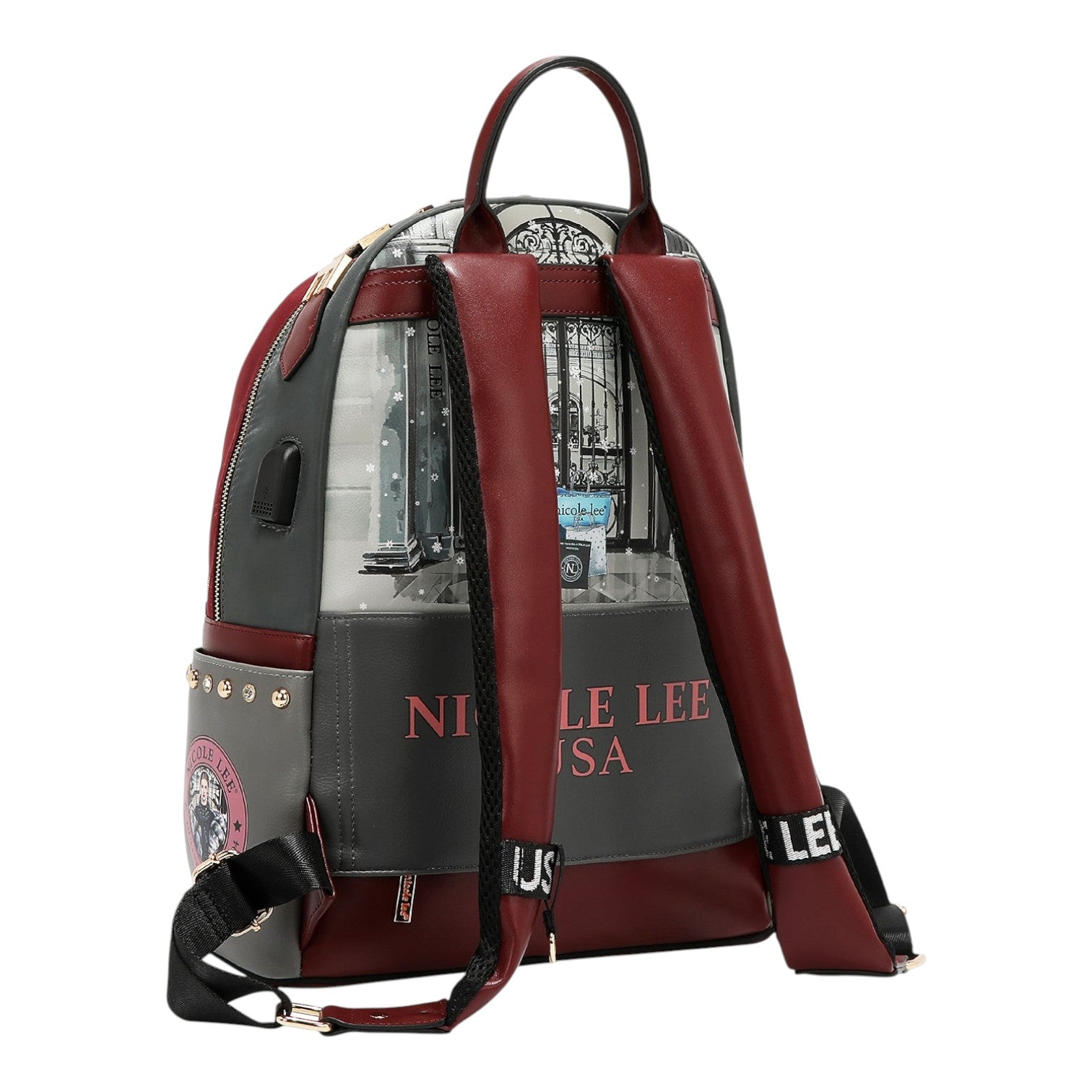 Mochila grande USB Nicole Lee Moda SnowFlake con portatodo
