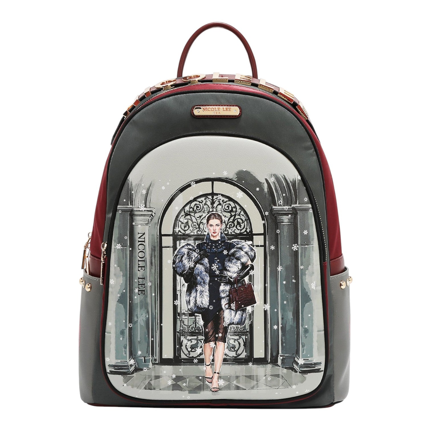 Preciosa Mochila grande Nicole Lee de la nueva colección Moda SnowFlake ideal para trabajo o universidad e incluso para viaje, tiene una gran capacidad, asas regulables a la medida deseada y asa superior de mano. Bolsillos laterales para poner un paraguas o botella de agua. Porta todo adicional a juego para guardar lo que necesites.