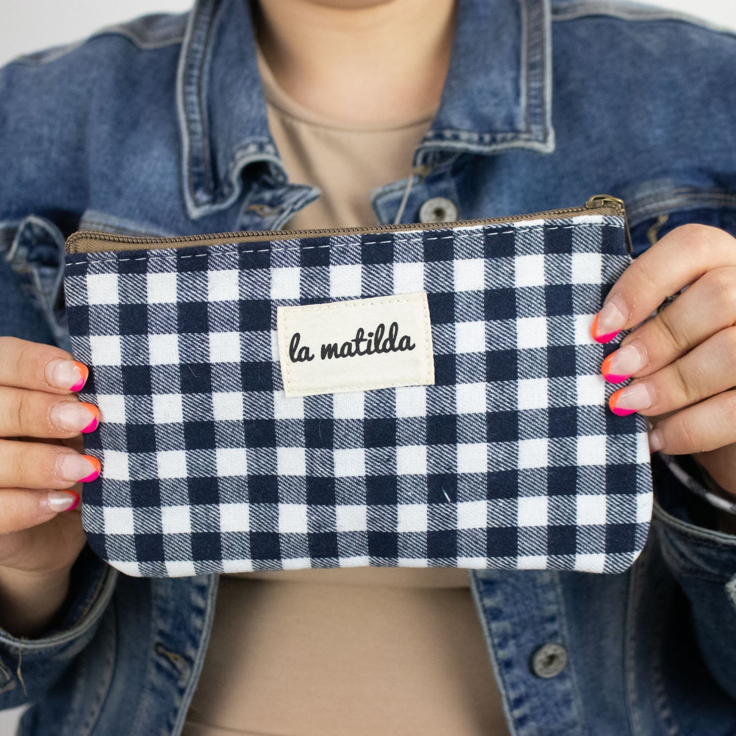 Neceser pequeño La Matilda en cuadros Vichy con cierre de cremallera, en tela, muy ligero y cómodo de llevar ideal para viajes , gimnasio, llevar maquillaje, compleméntalo con tu bolsa de La Matilda