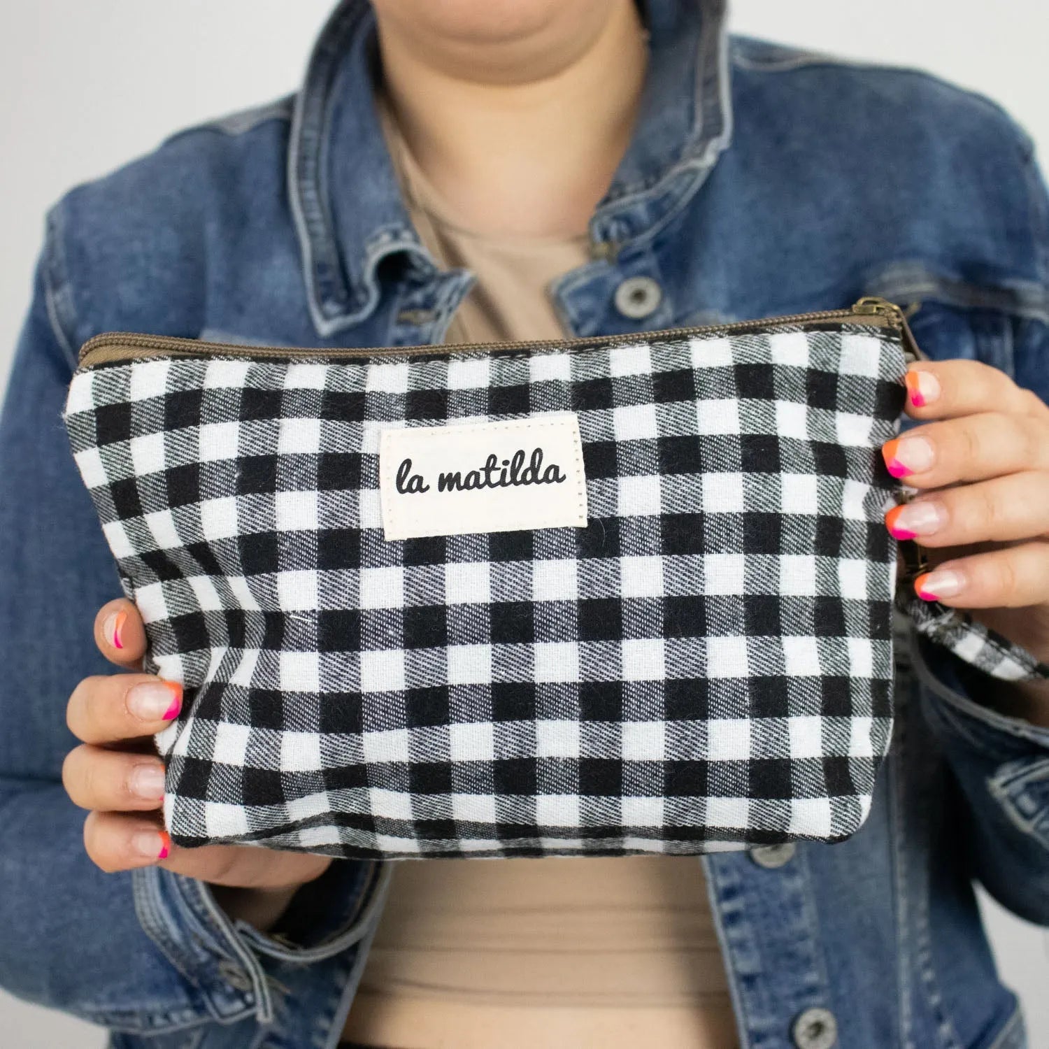 Neceser grande La Matilda en cuadros Vichy con cierre de cremallera, en tela, muy ligero y cómodo de llevar ideal para viajes , gimnasio, llevar maquillaje, compleméntalo con tu bolsa de La Matilda