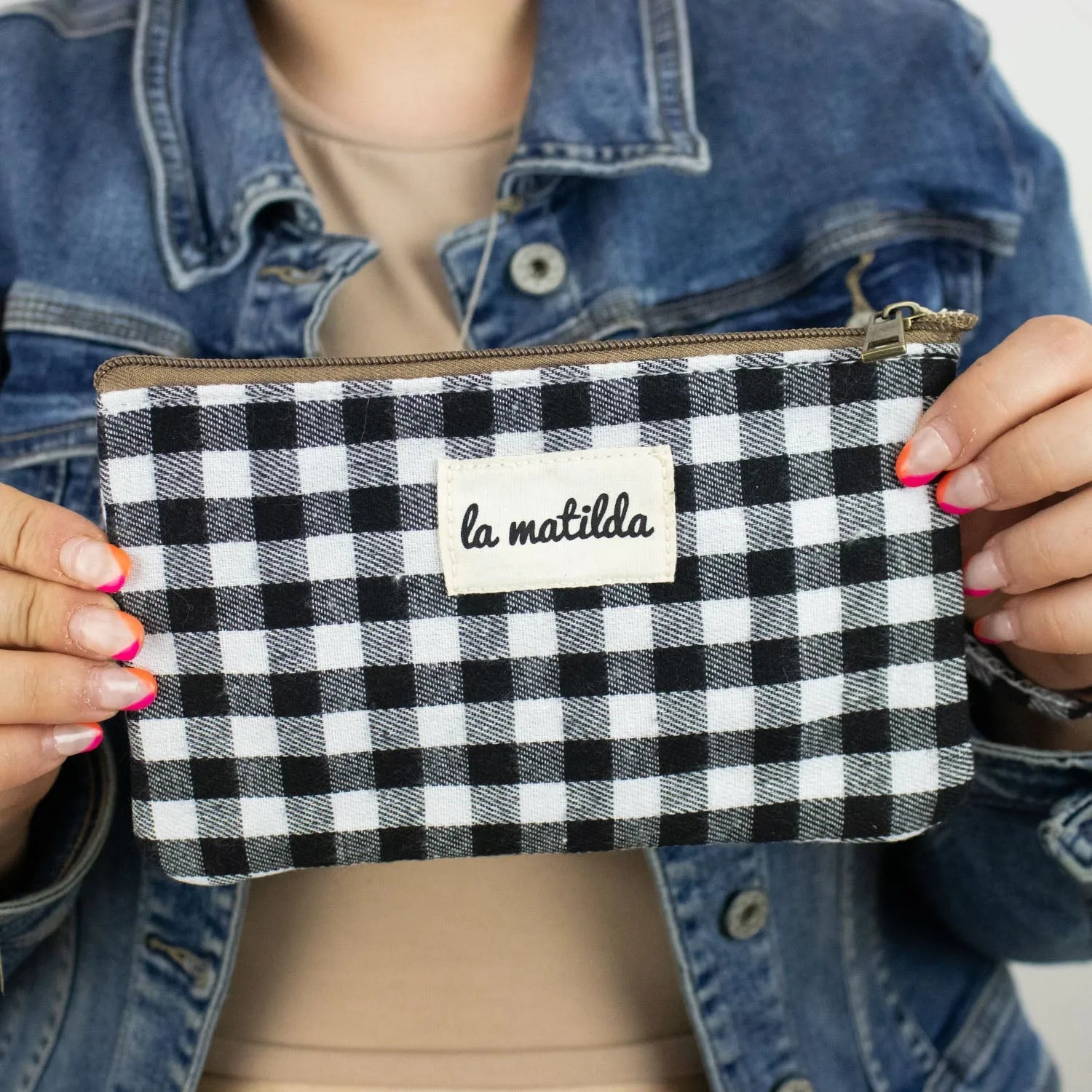 Neceser pequeño La Matilda en cuadros Vichy con cierre de cremallera, en tela, muy ligero y cómodo de llevar ideal para viajes , gimnasio, llevar maquillaje, compleméntalo con tu bolsa de La Matilda