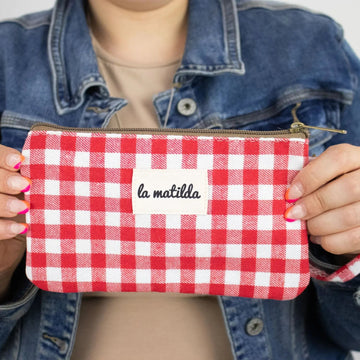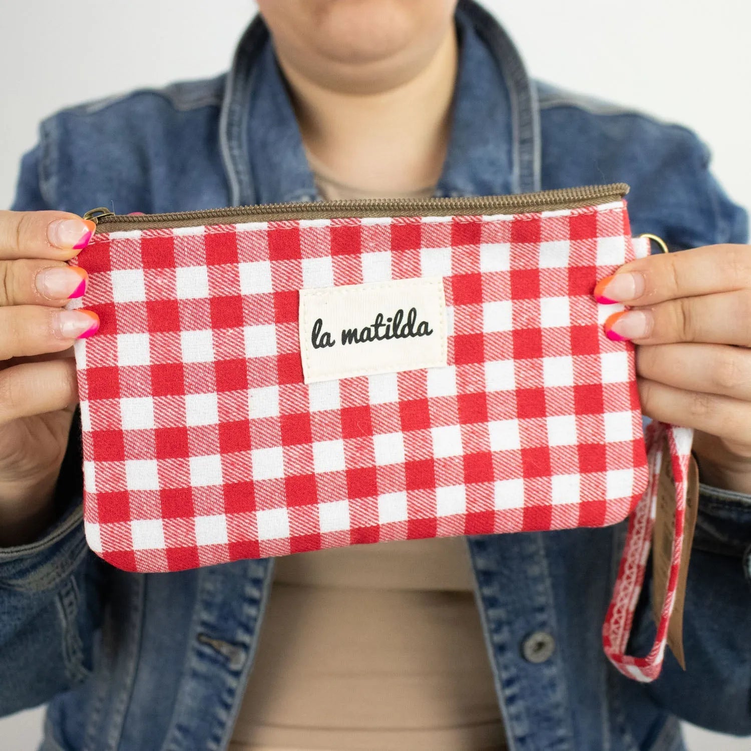 Neceser pequeño La Matilda en cuadros Vichy con cierre de cremallera, en tela, muy ligero y cómodo de llevar ideal para viajes , gimnasio, llevar maquillaje, compleméntalo con tu bolsa de La Matilda