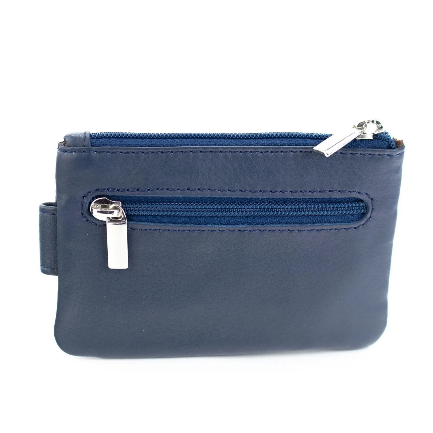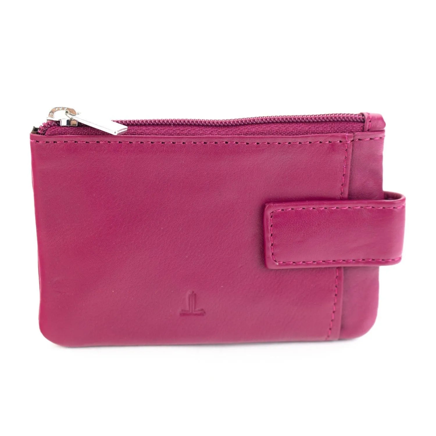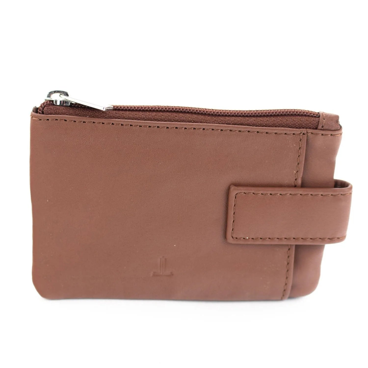 Este tarjetero de tamaño pequeño es ideal como complemento al billetero, realizado en piel 100% con un acabado muy suave, tiene un compartimento con cierre de cremallera y un bolsillo con broche, además incluye cuelga llaves interior.