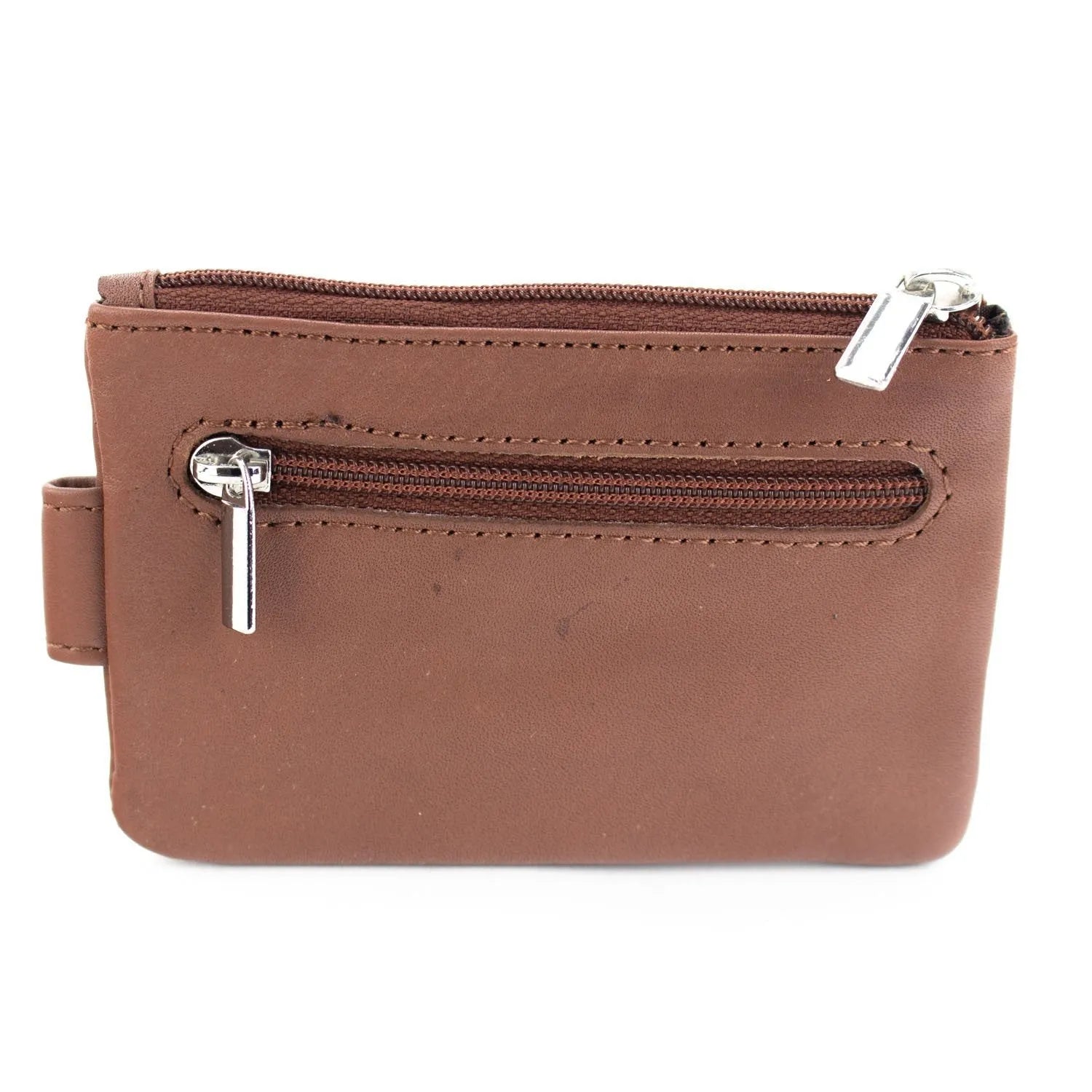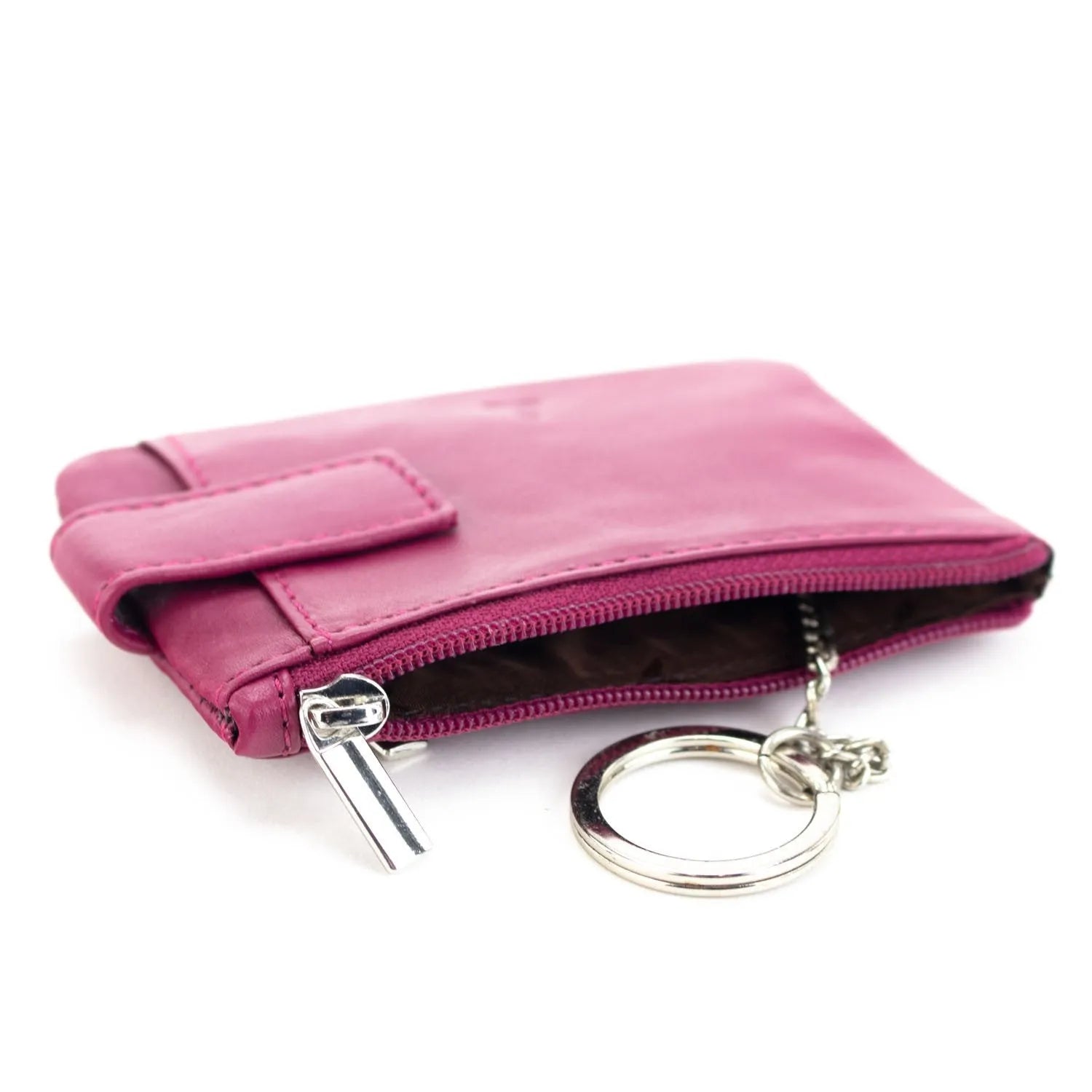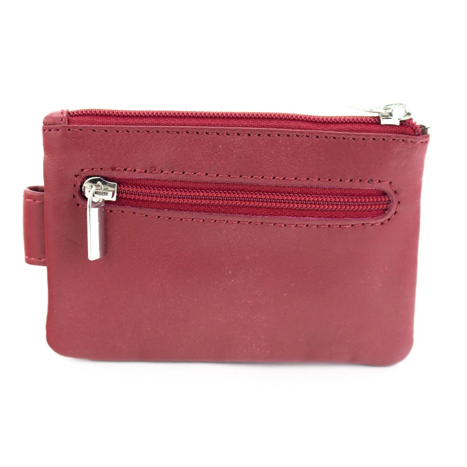 Este tarjetero de tamaño pequeño es ideal como complemento al billetero, realizado en piel 100% con un acabado muy suave, tiene un compartimento con cierre de cremallera y un bolsillo con broche, además incluye cuelga llaves interior.